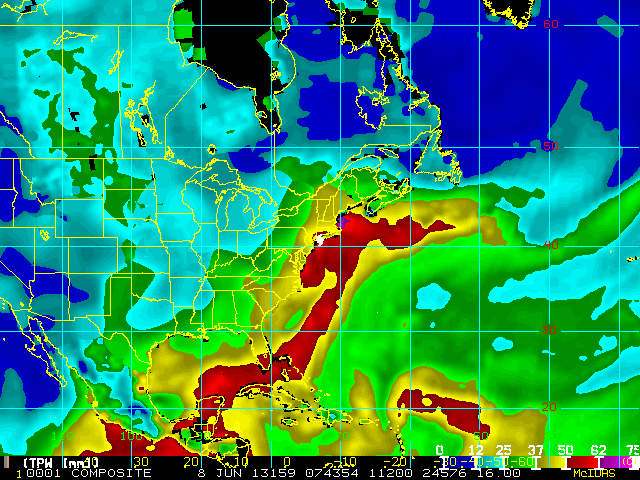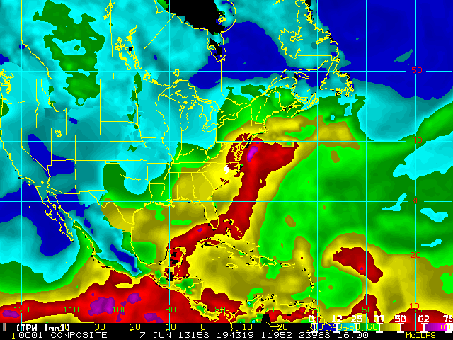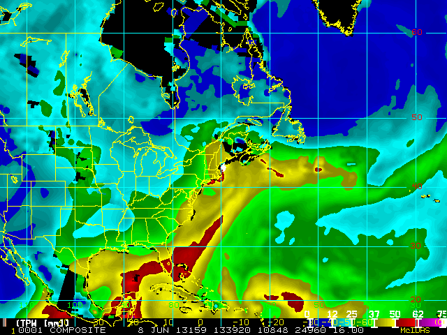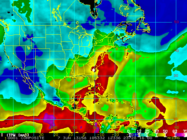 Storm Relative 16 km Microwave-Based Total Precipitable Water Imagery - Archive