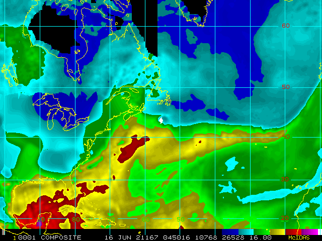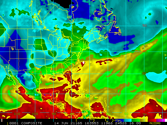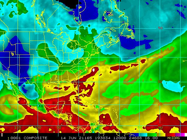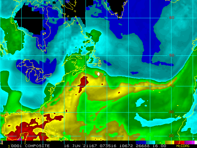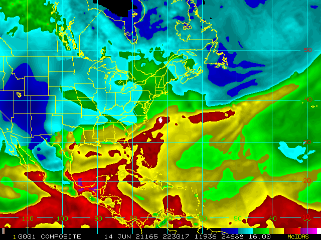 Storm Relative 16 km Microwave-Based Total Precipitable Water Imagery - Archive