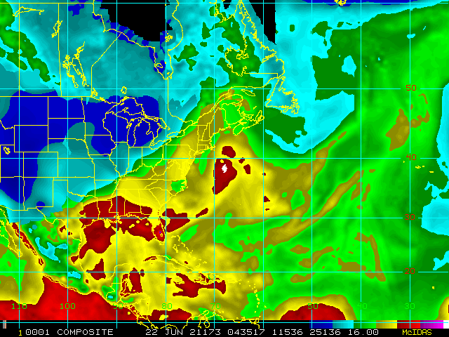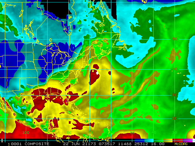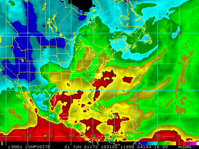 Storm Relative 16 km Microwave-Based Total Precipitable Water Imagery - Archive