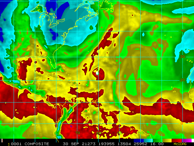 Storm Relative 16 km Microwave-Based Total Precipitable Water Imagery - Archive