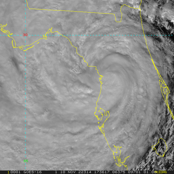 To view a loop of all images from this storm, click any of the "Loop" buttons without selecting any specific images. To select a specific range of images click an option for "Starting Image" and "Ending Image", and then click any of the "Loop" buttons.