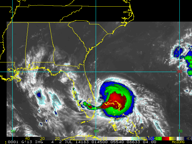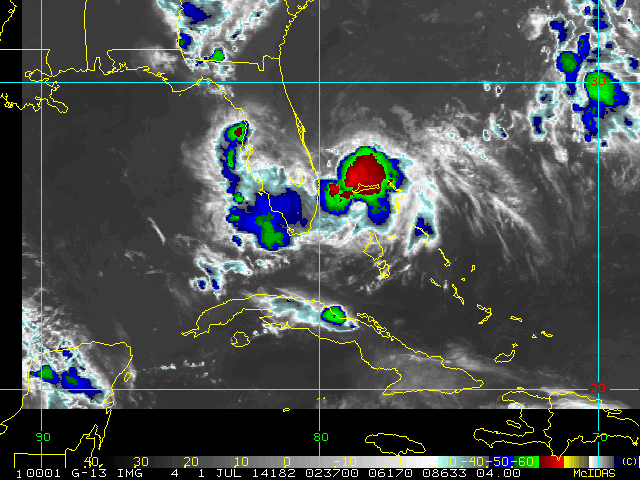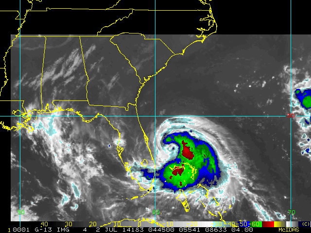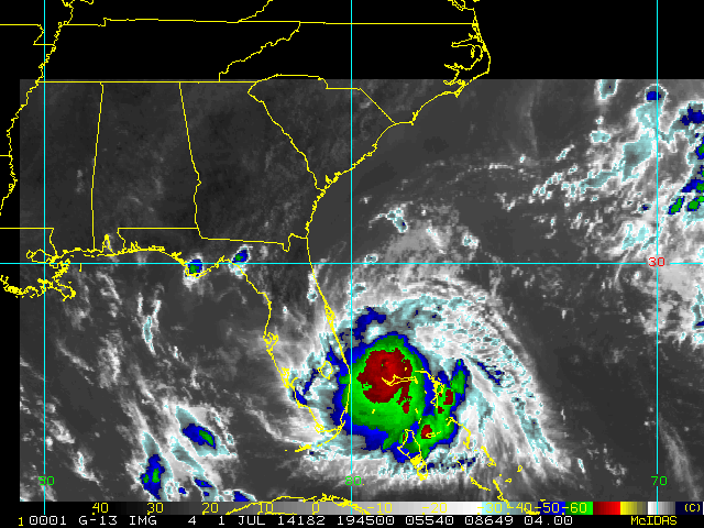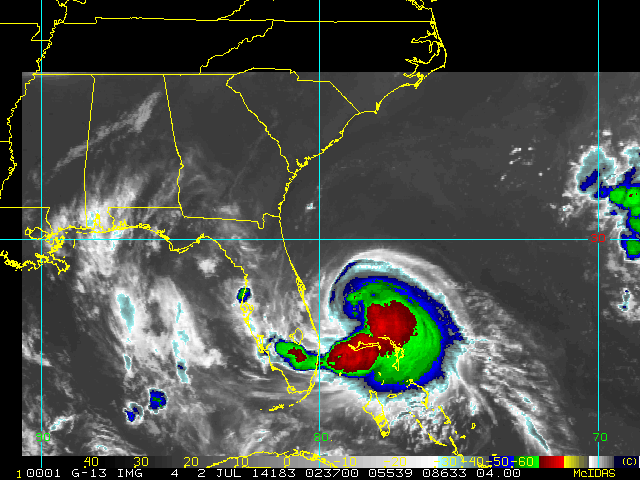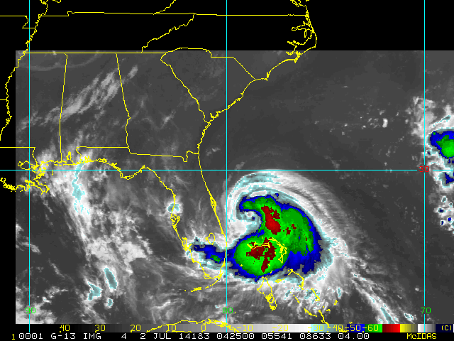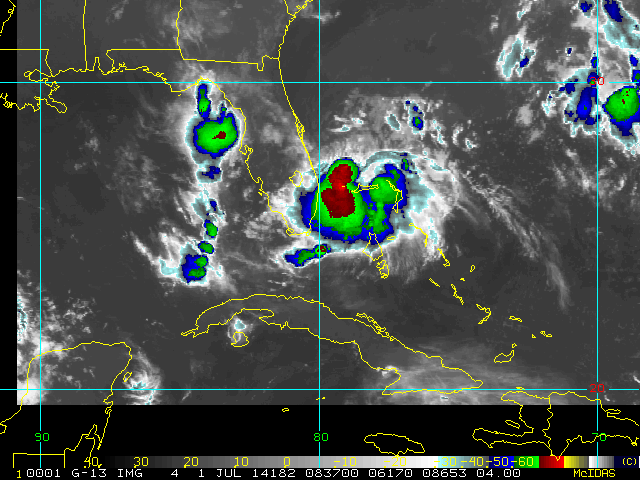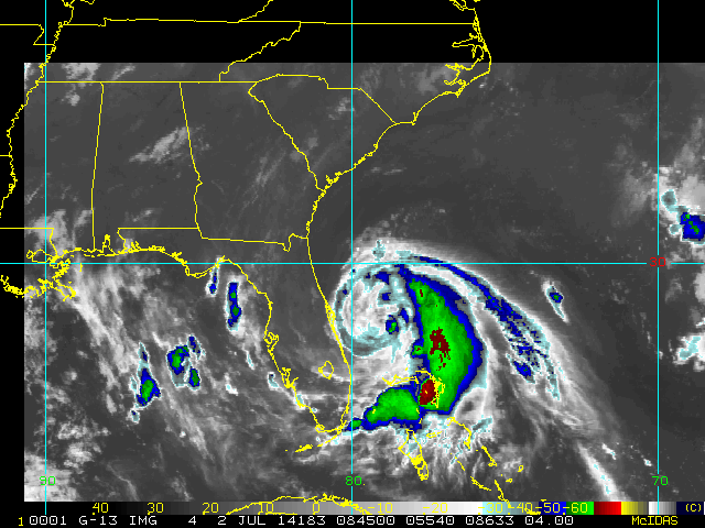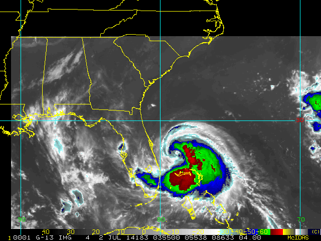 To view a loop of all images from this storm, click any of the "Loop" buttons without selecting any specific images. To select a specific range of images click an option for "Starting Image" and "Ending Image", and then click any of the "Loop" buttons.