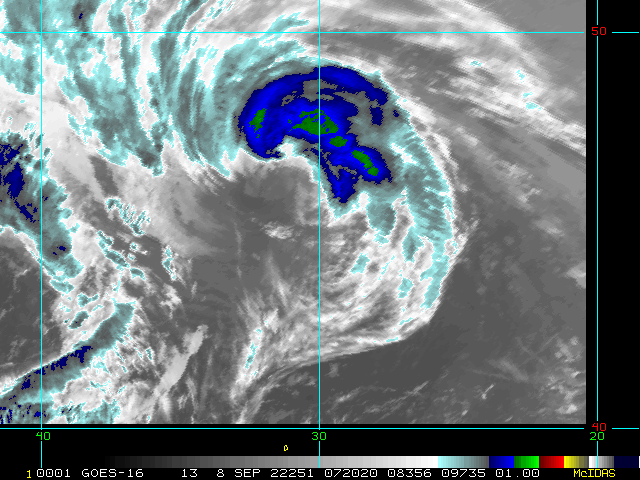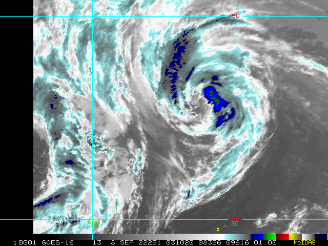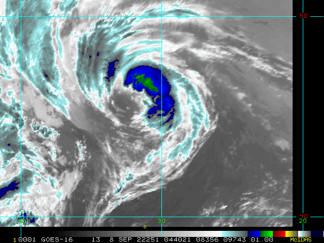 To view a loop of all images from this storm, click any of the "Loop" buttons without selecting any specific images. To select a specific range of images click an option for "Starting Image" and "Ending Image", and then click any of the "Loop" buttons.
