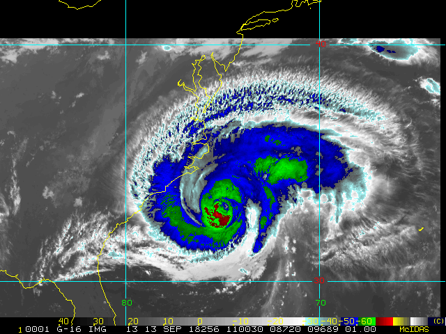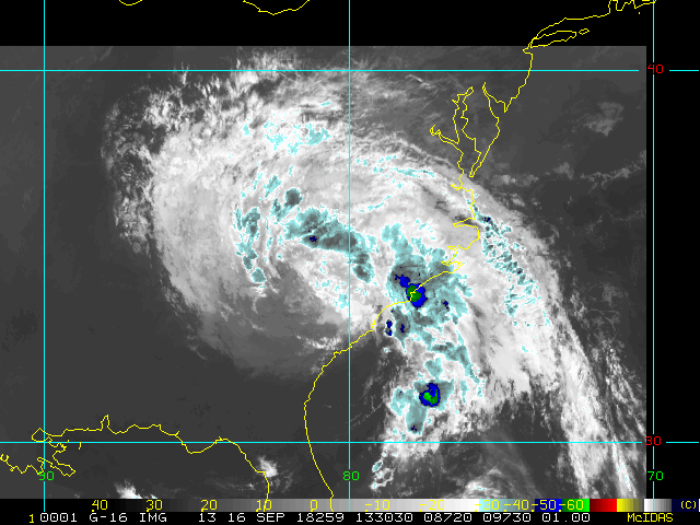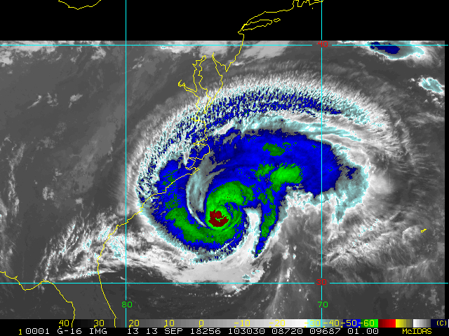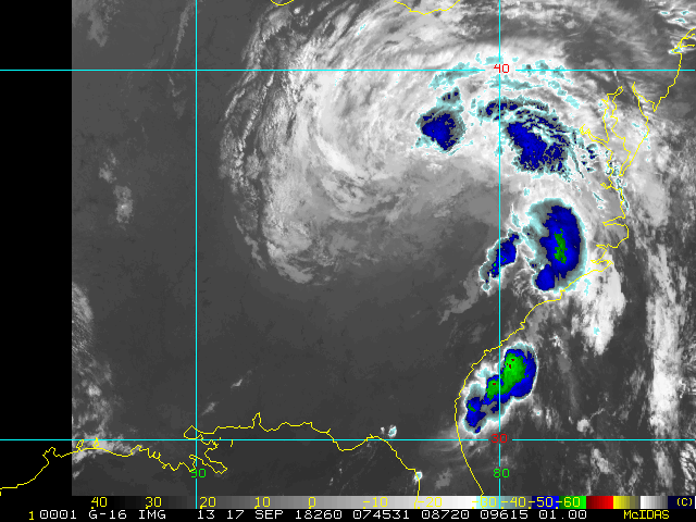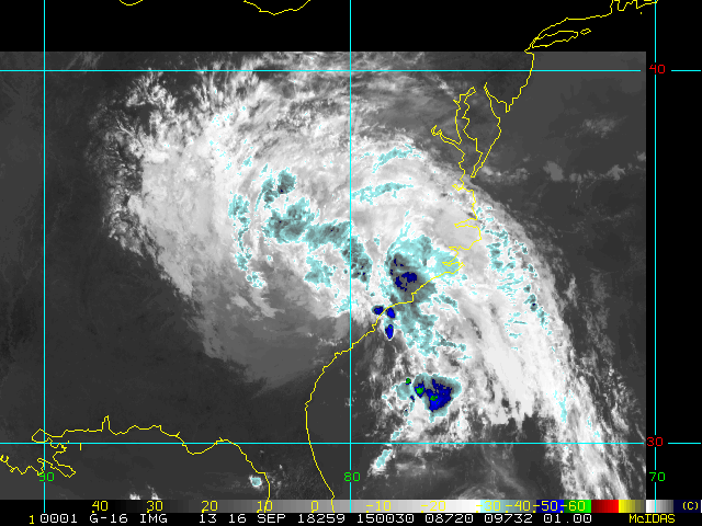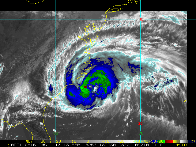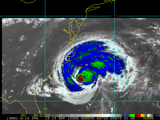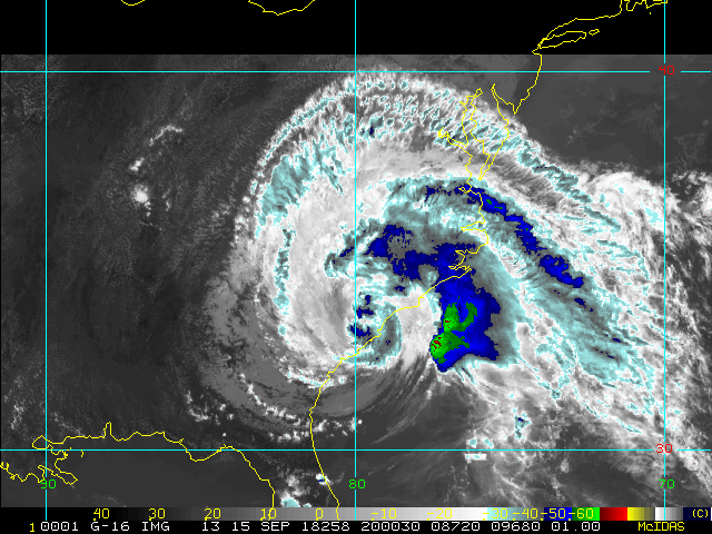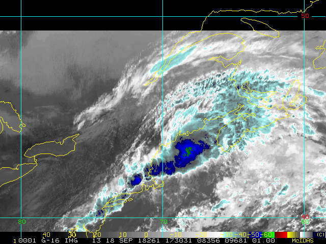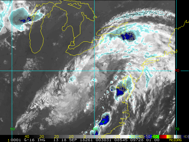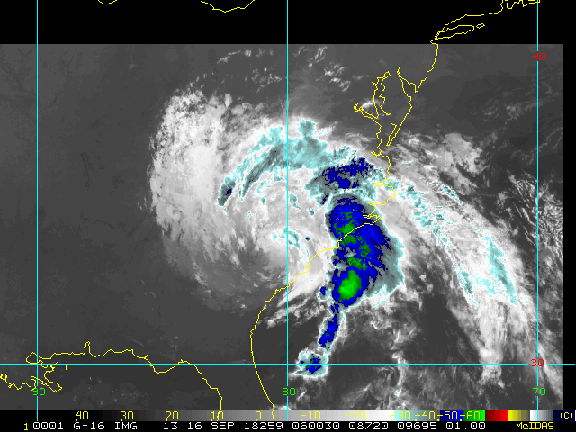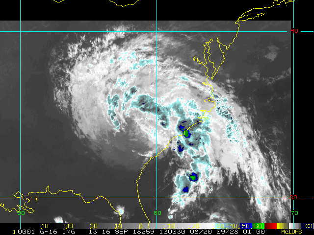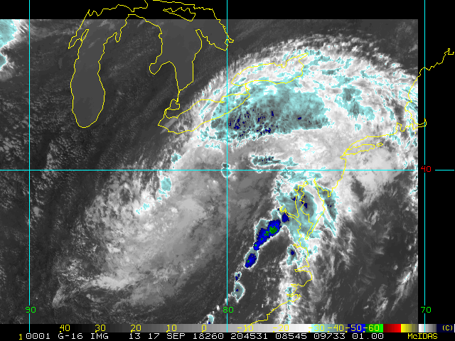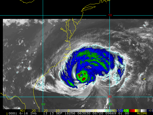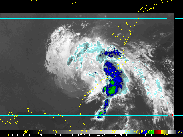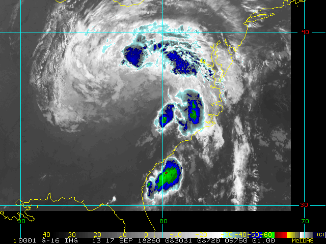 To view a loop of all images from this storm, click any of the "Loop" buttons without selecting any specific images. To select a specific range of images click an option for "Starting Image" and "Ending Image", and then click any of the "Loop" buttons.