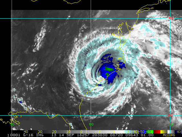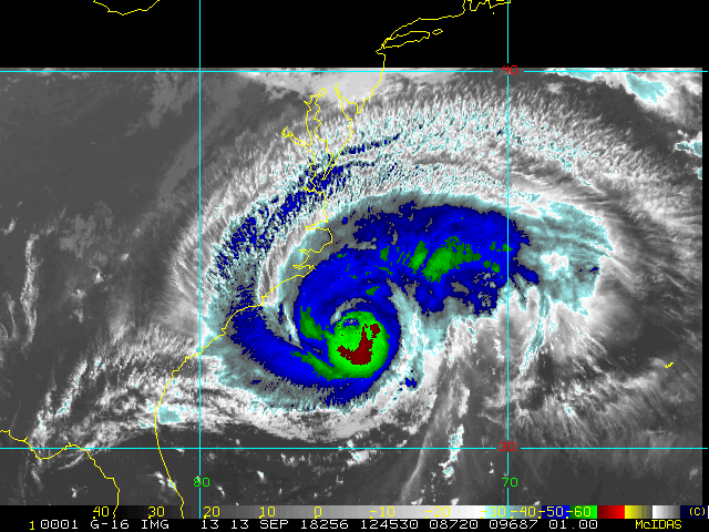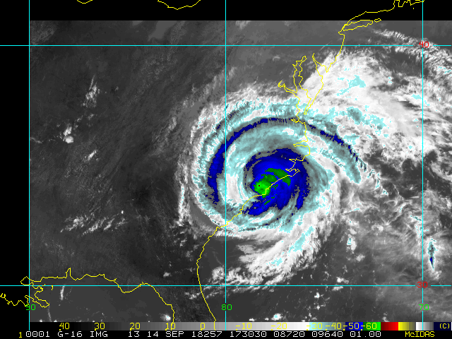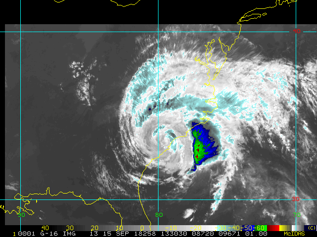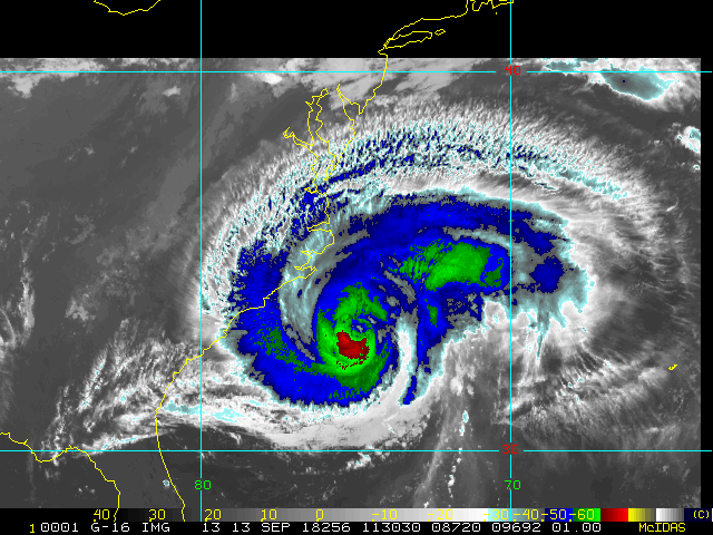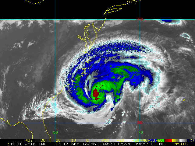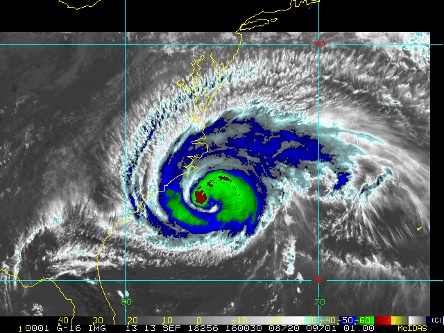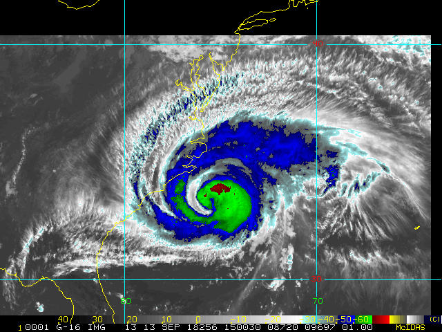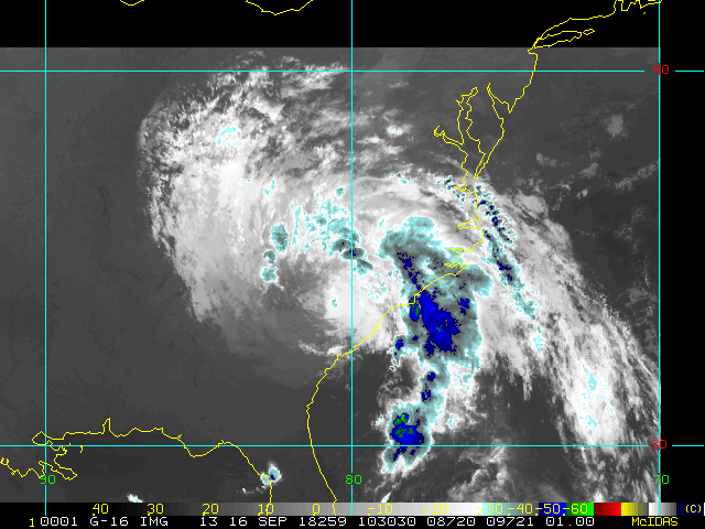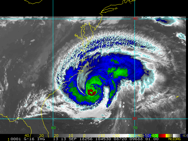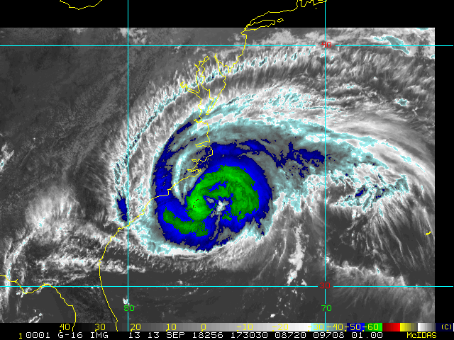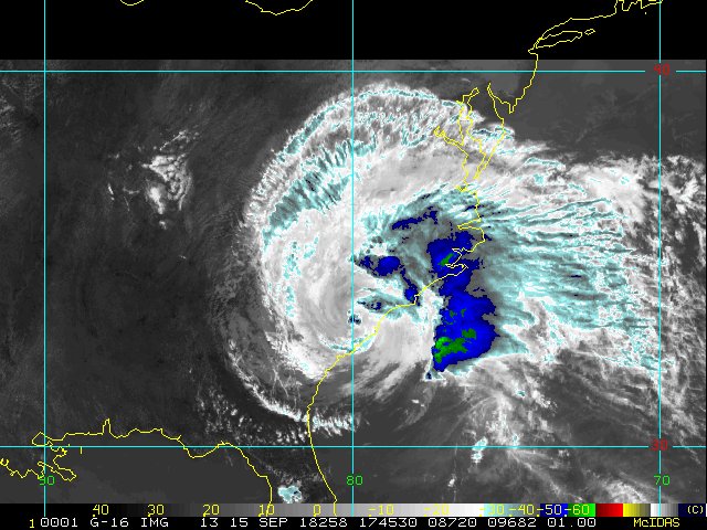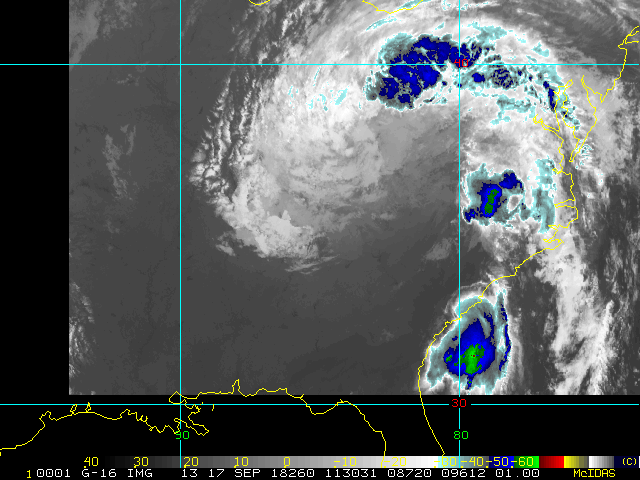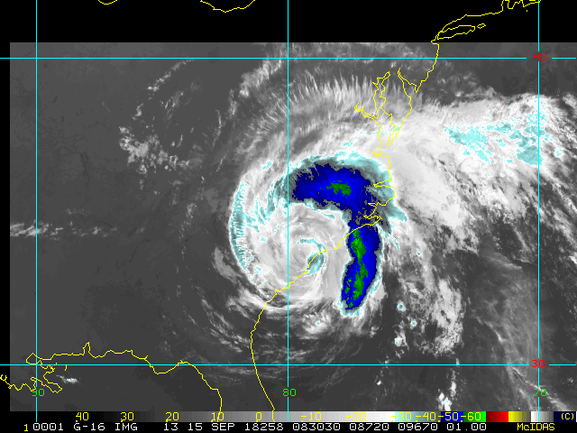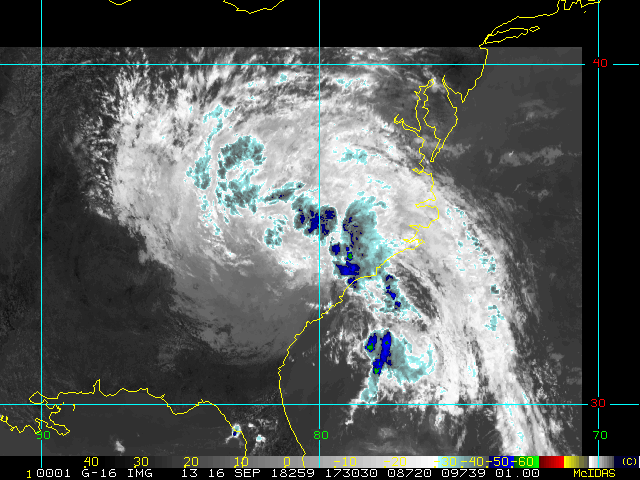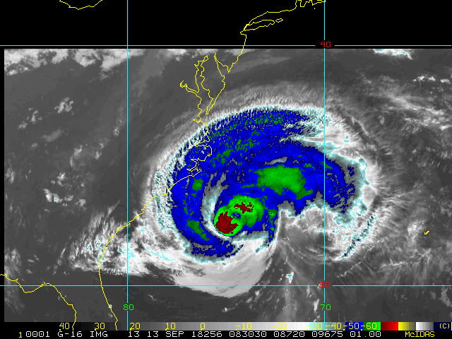 To view a loop of all images from this storm, click any of the "Loop" buttons without selecting any specific images. To select a specific range of images click an option for "Starting Image" and "Ending Image", and then click any of the "Loop" buttons.