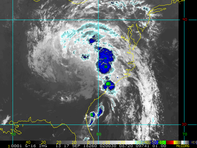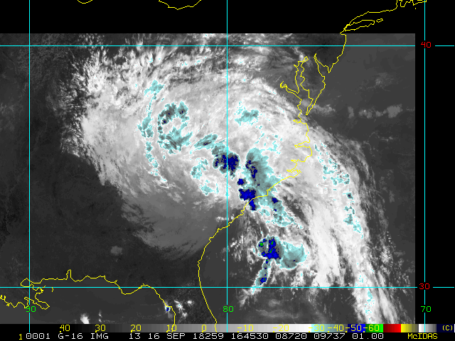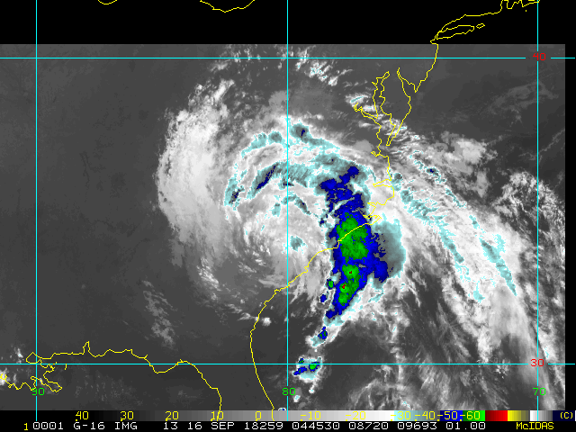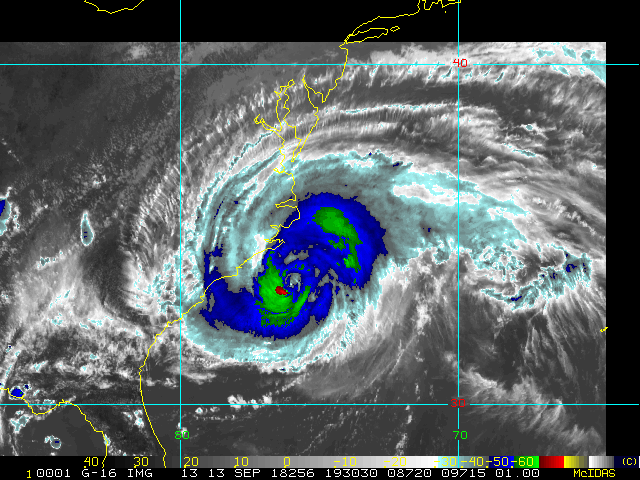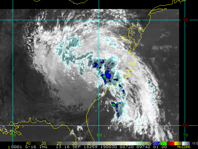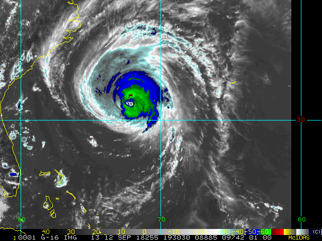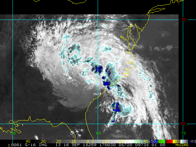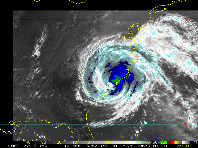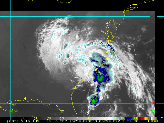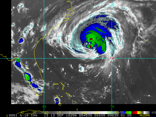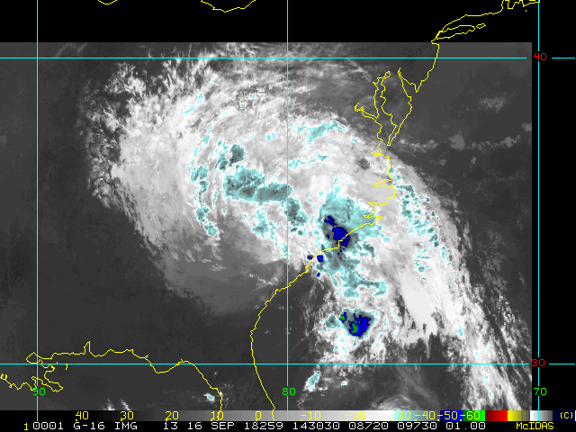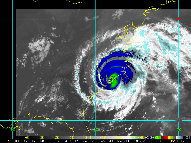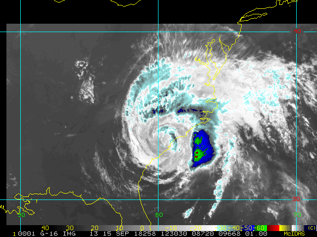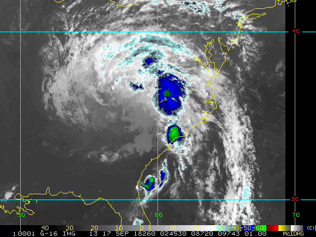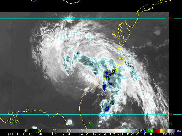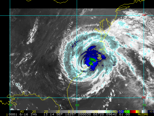 To view a loop of all images from this storm, click any of the "Loop" buttons without selecting any specific images. To select a specific range of images click an option for "Starting Image" and "Ending Image", and then click any of the "Loop" buttons.