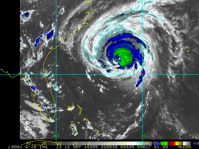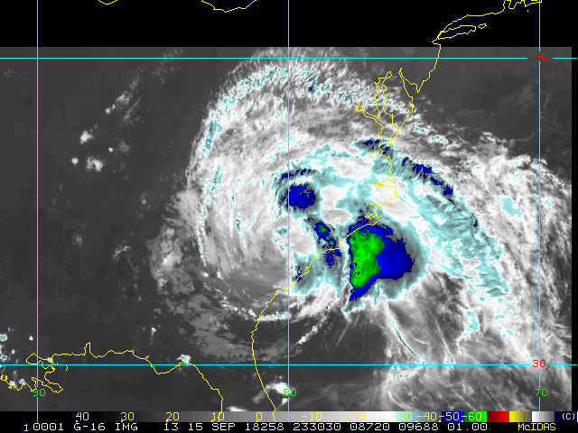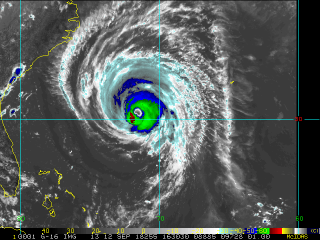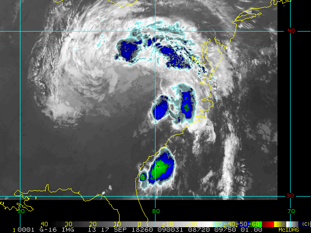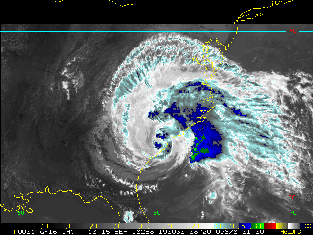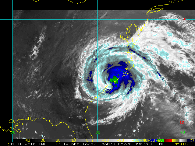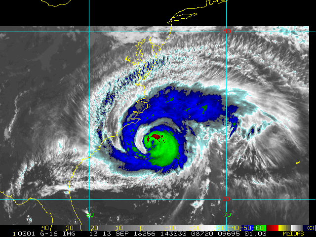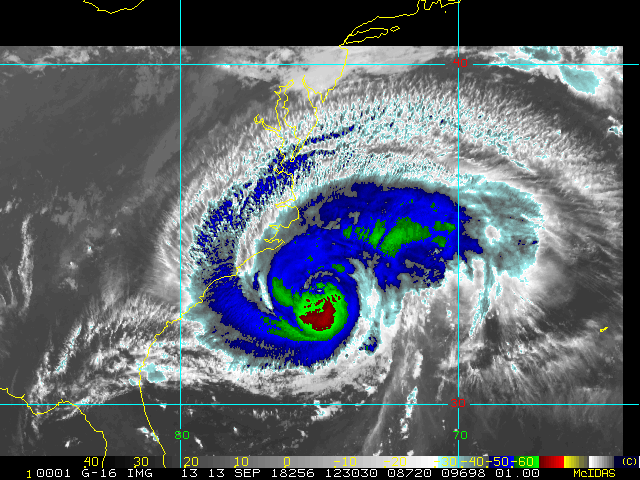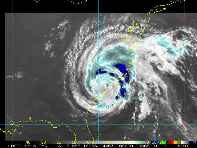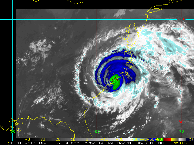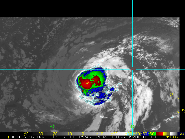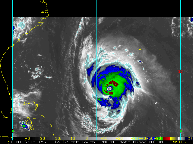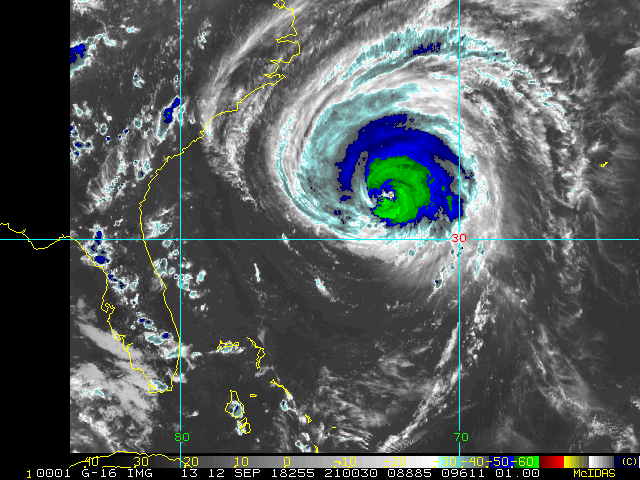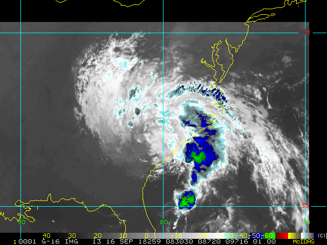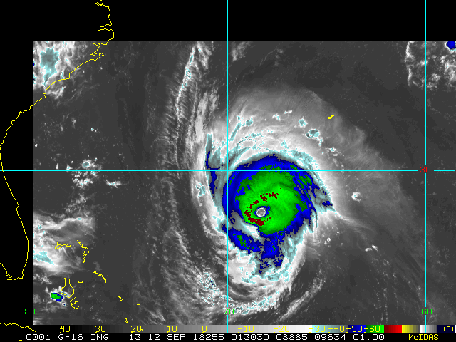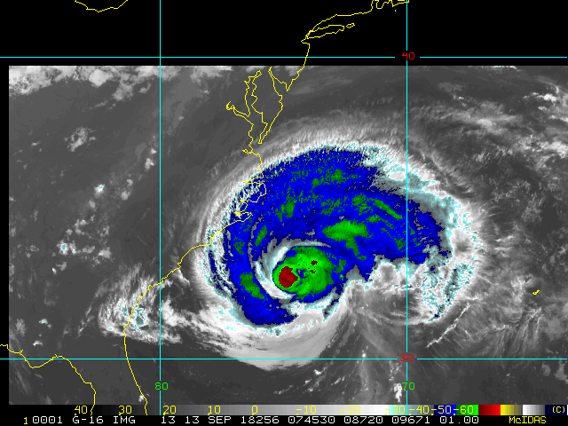 To view a loop of all images from this storm, click any of the "Loop" buttons without selecting any specific images. To select a specific range of images click an option for "Starting Image" and "Ending Image", and then click any of the "Loop" buttons.