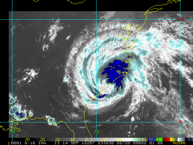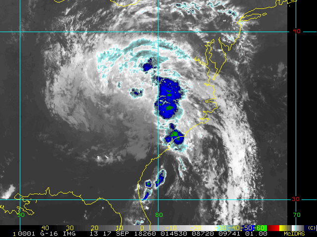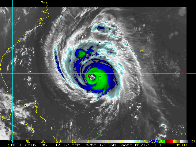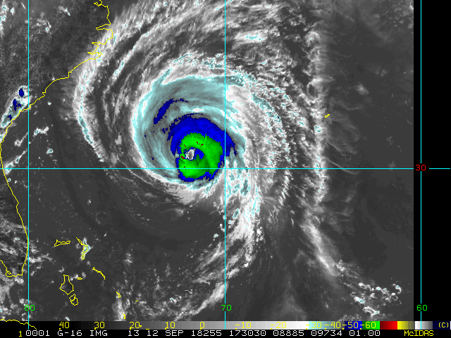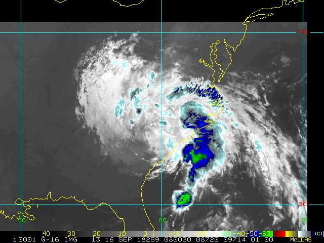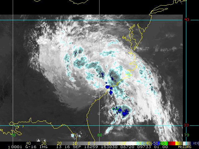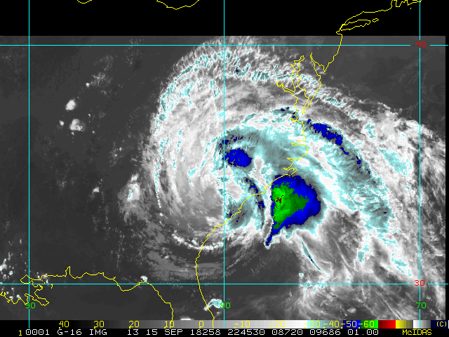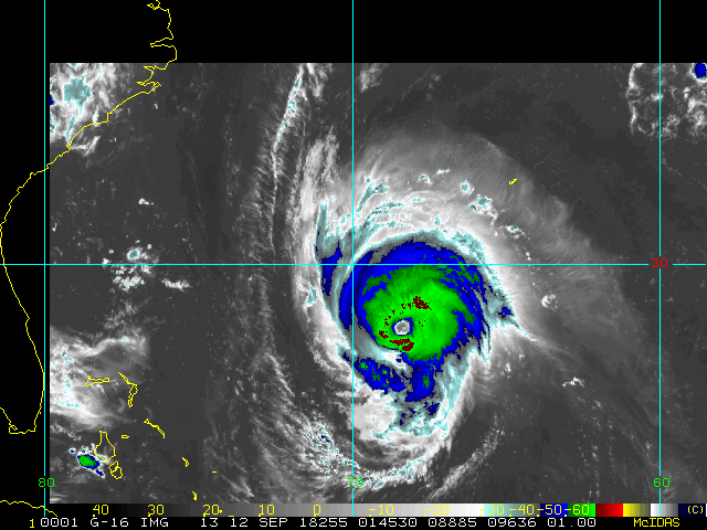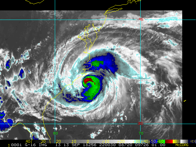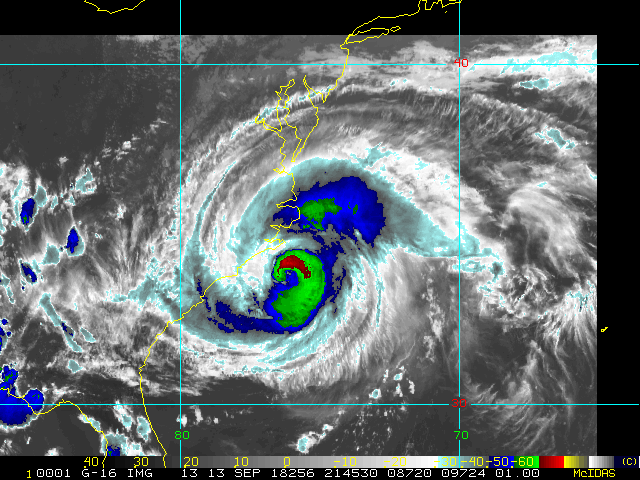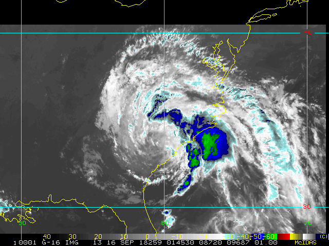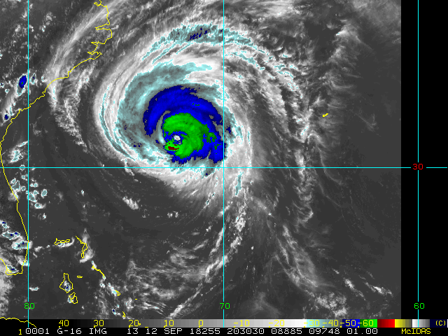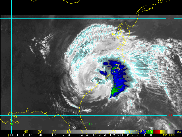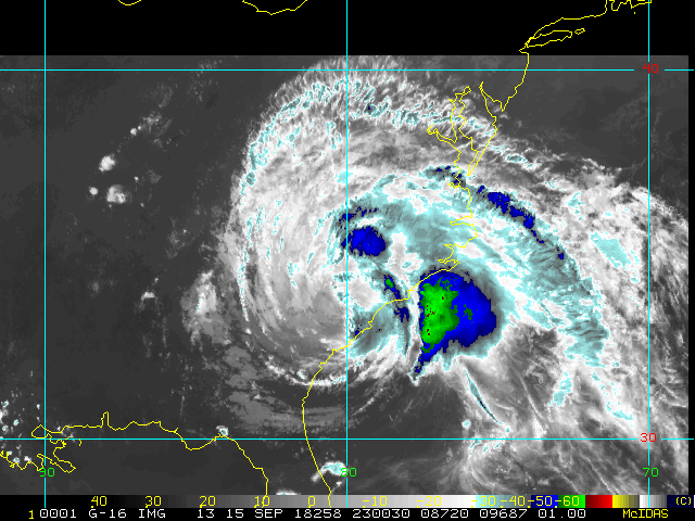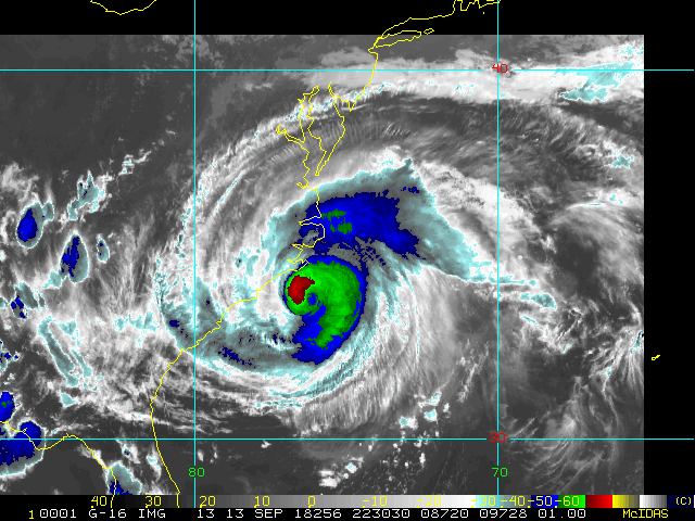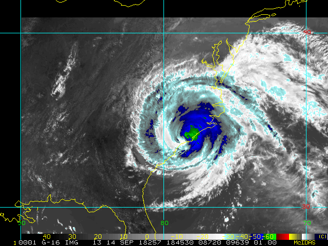 To view a loop of all images from this storm, click any of the "Loop" buttons without selecting any specific images. To select a specific range of images click an option for "Starting Image" and "Ending Image", and then click any of the "Loop" buttons.