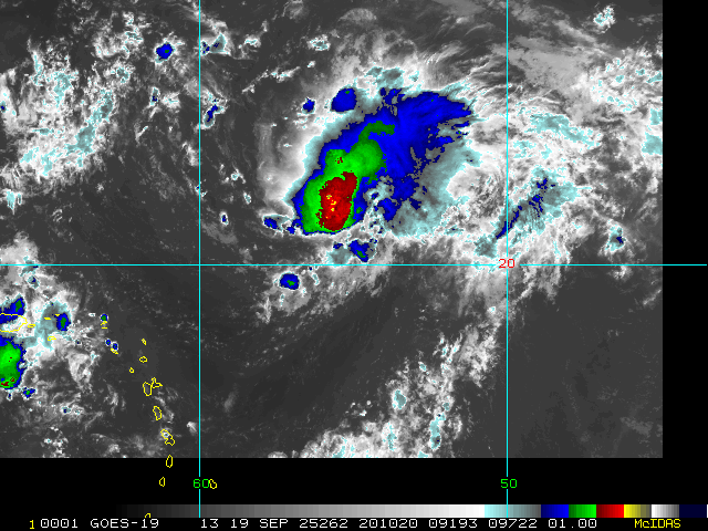 To view a loop of all images from this storm, click any of the "Loop" buttons without selecting any specific images. To select a specific range of images click an option for "Starting Image" and "Ending Image", and then click any of the "Loop" buttons.