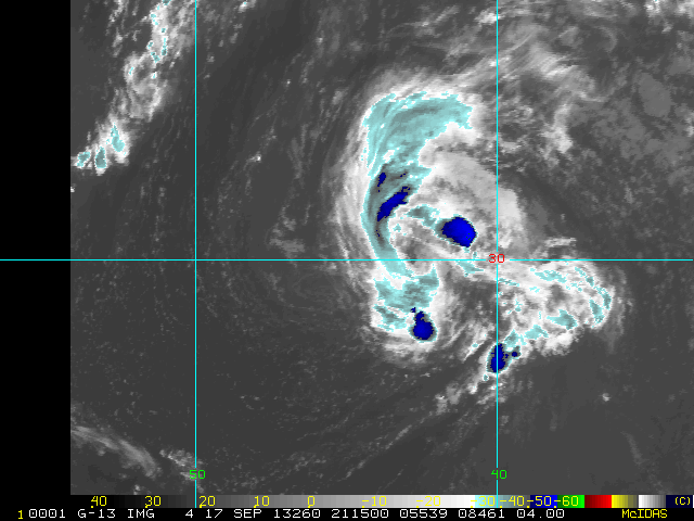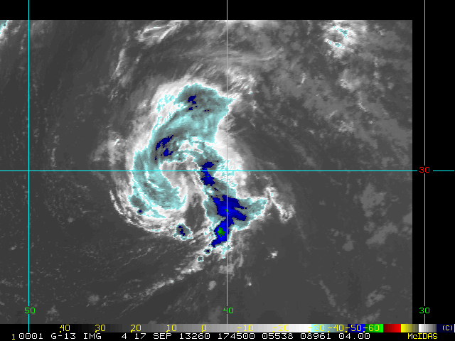 To view a loop of all images from this storm, click any of the "Loop" buttons without selecting any specific images. To select a specific range of images click an option for "Starting Image" and "Ending Image", and then click any of the "Loop" buttons.