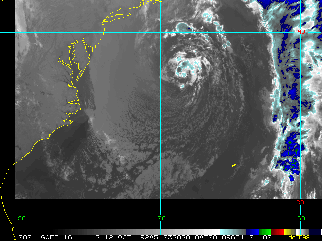 To view a loop of all images from this storm, click any of the "Loop" buttons without selecting any specific images. To select a specific range of images click an option for "Starting Image" and "Ending Image", and then click any of the "Loop" buttons.
