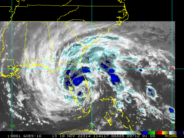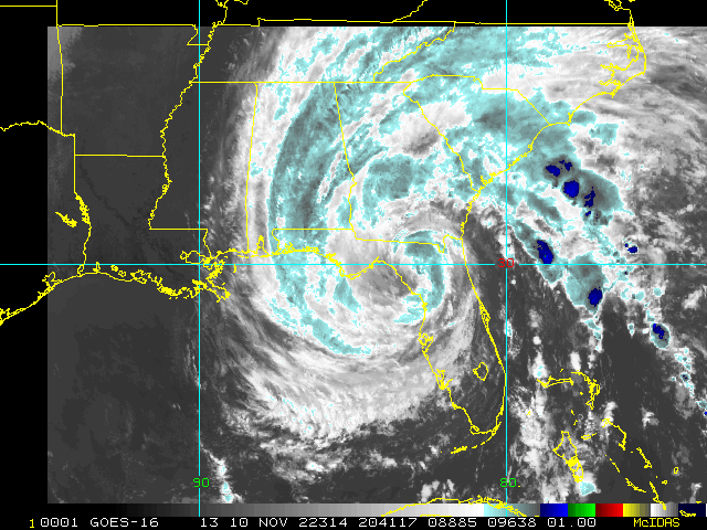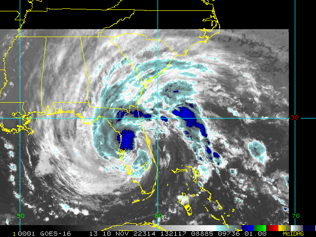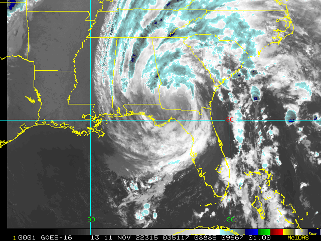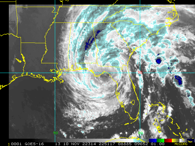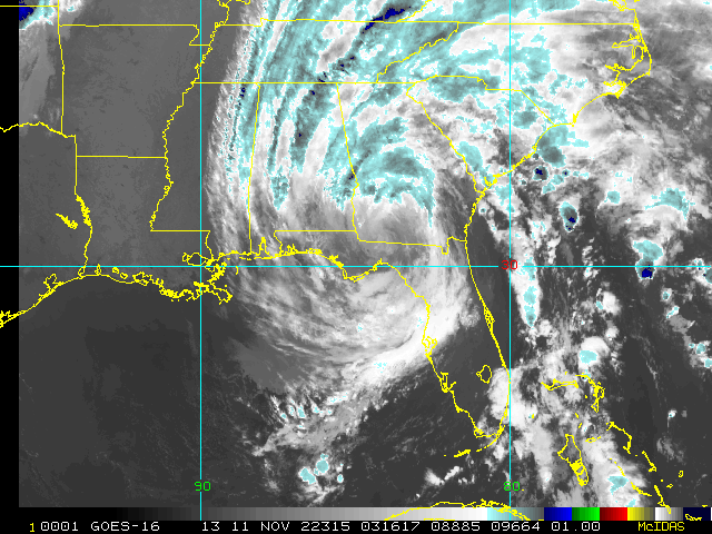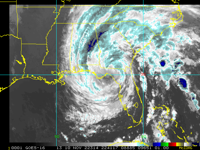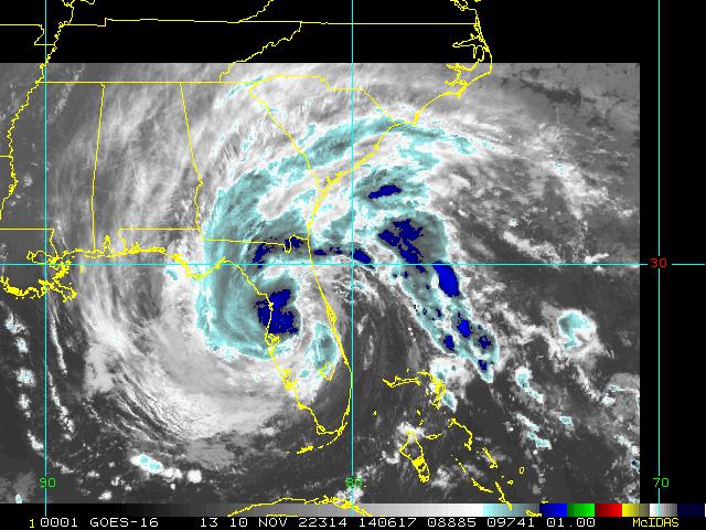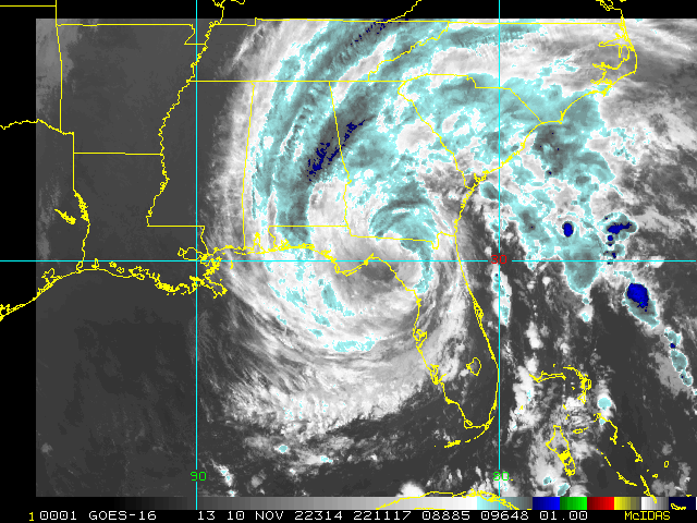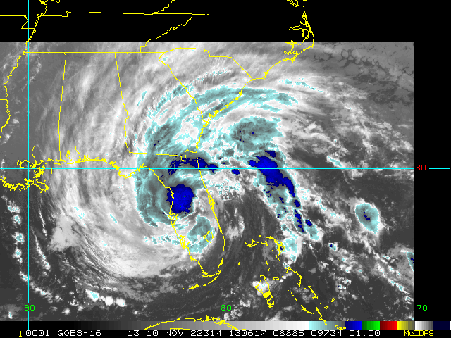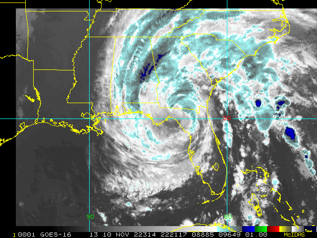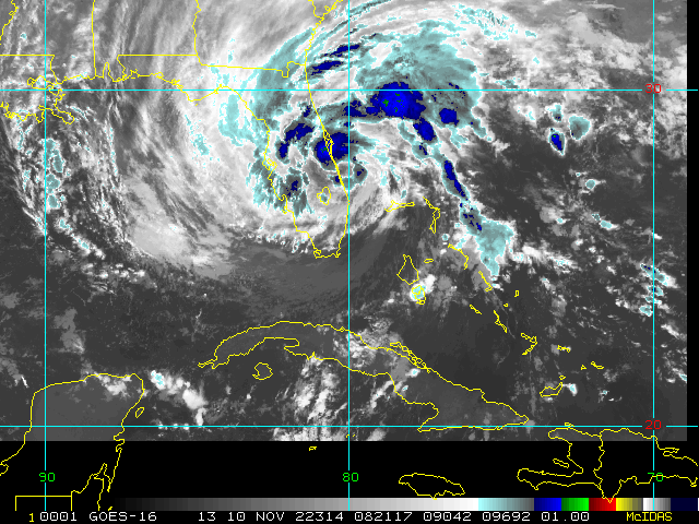 To view a loop of all images from this storm, click any of the "Loop" buttons without selecting any specific images. To select a specific range of images click an option for "Starting Image" and "Ending Image", and then click any of the "Loop" buttons.