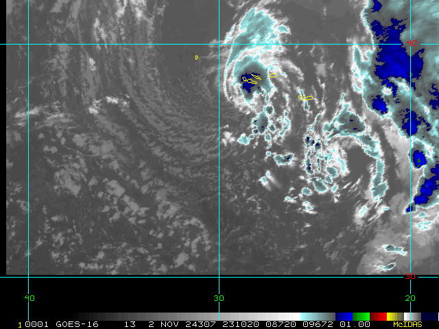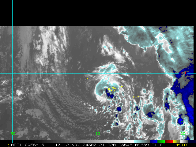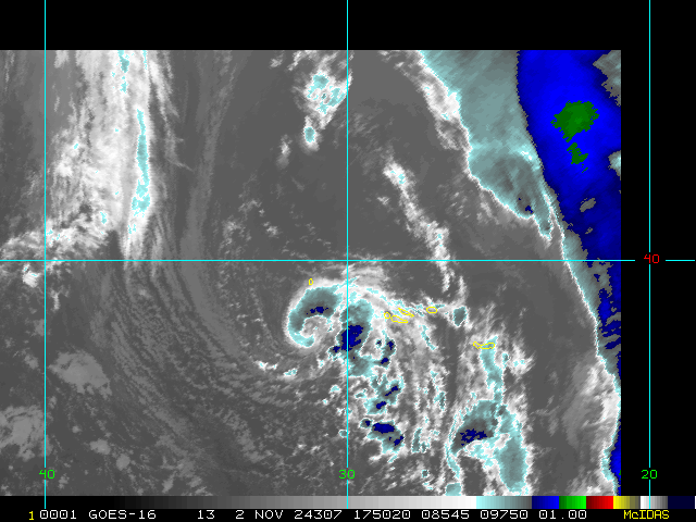 To view a loop of all images from this storm, click any of the "Loop" buttons without selecting any specific images. To select a specific range of images click an option for "Starting Image" and "Ending Image", and then click any of the "Loop" buttons.