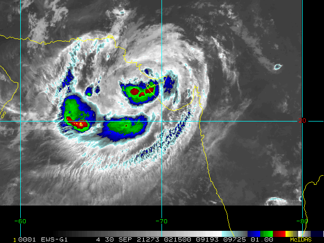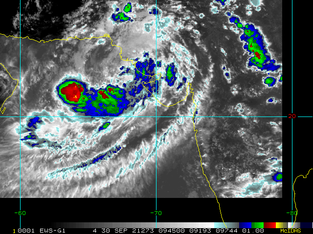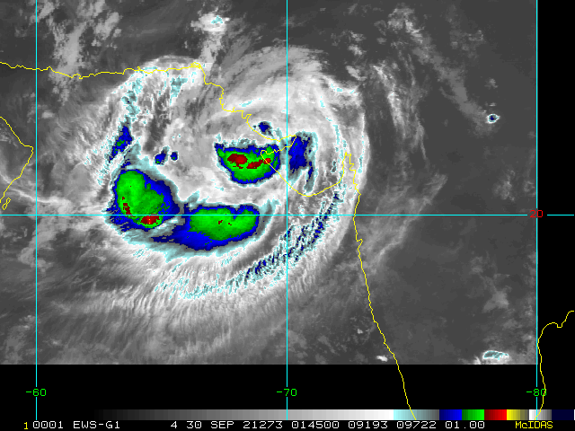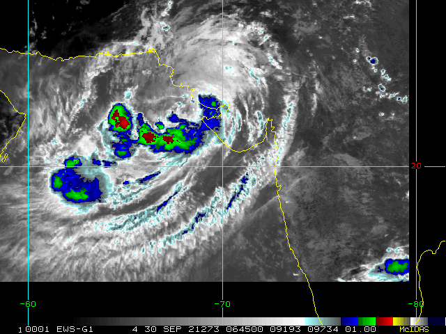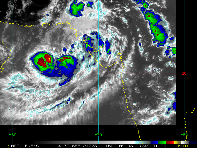 To view a loop of all images from this storm, click any of the "Loop" buttons without selecting any specific images. To select a specific range of images click an option for "Starting Image" and "Ending Image", and then click any of the "Loop" buttons.