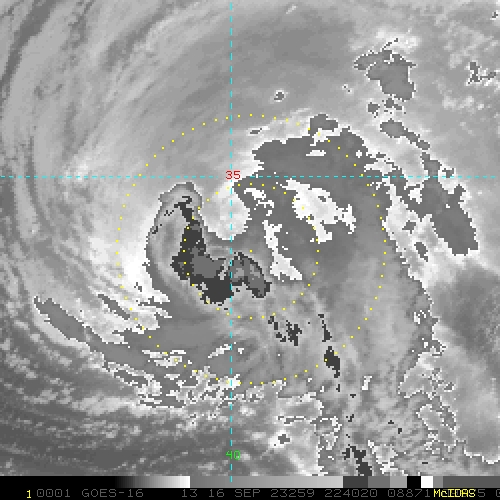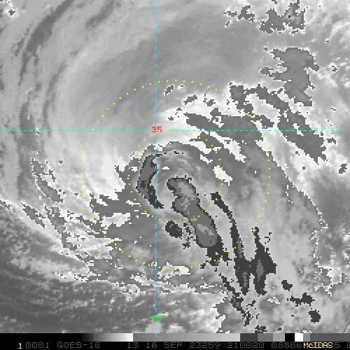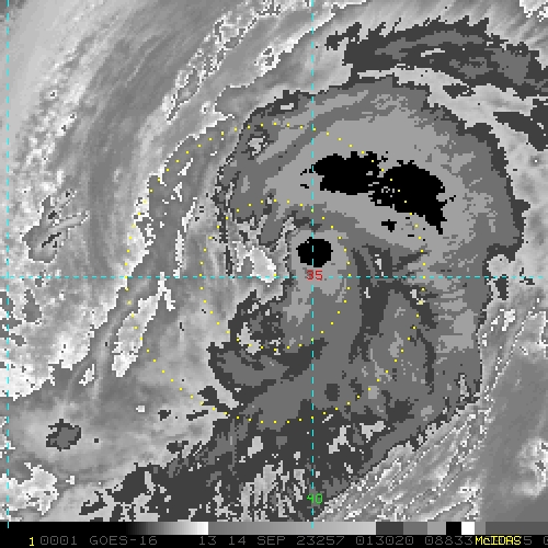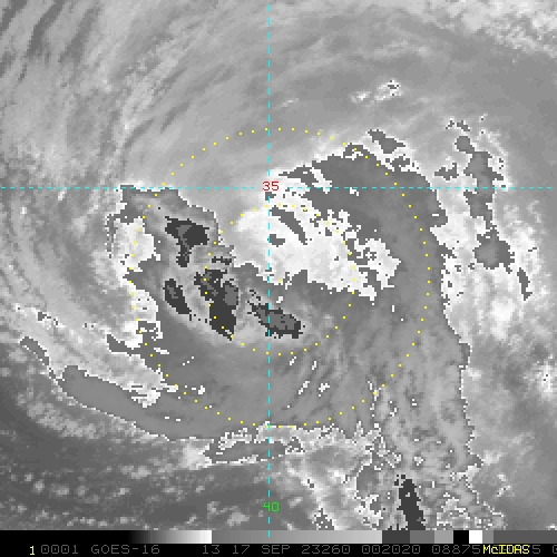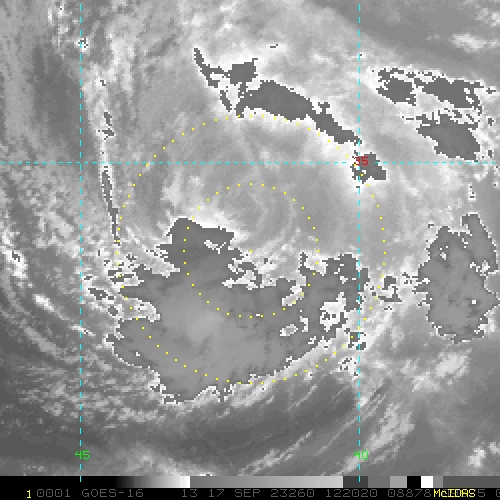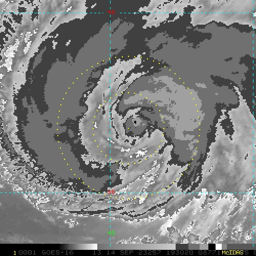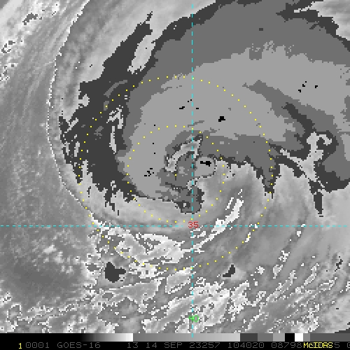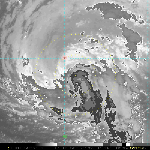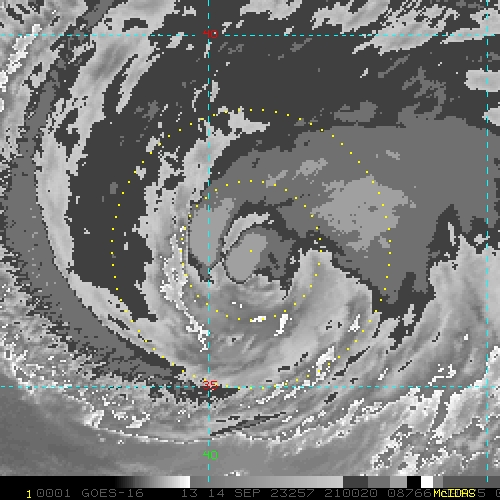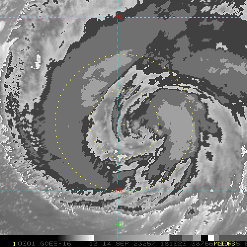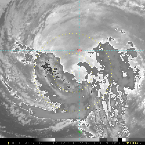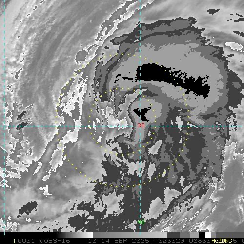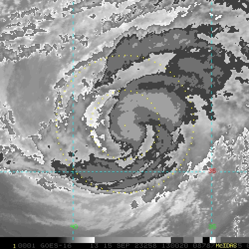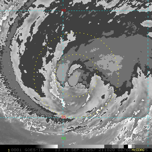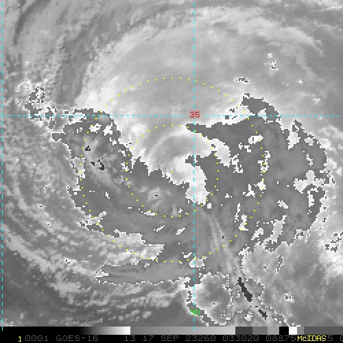To view a loop of all images from this storm, click any of the "Loop" buttons without selecting any specific images. To select a specific range of images click an option for "Starting Image" and "Ending Image", and then click any of the "Loop" buttons.