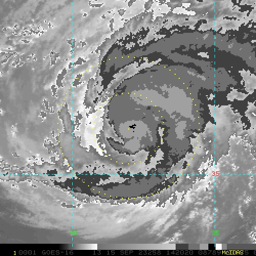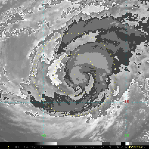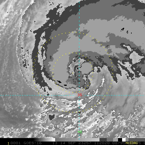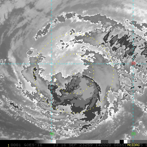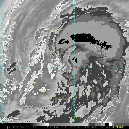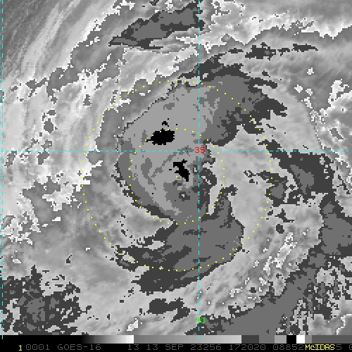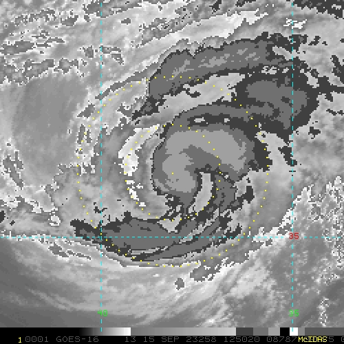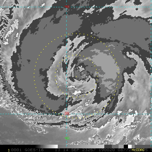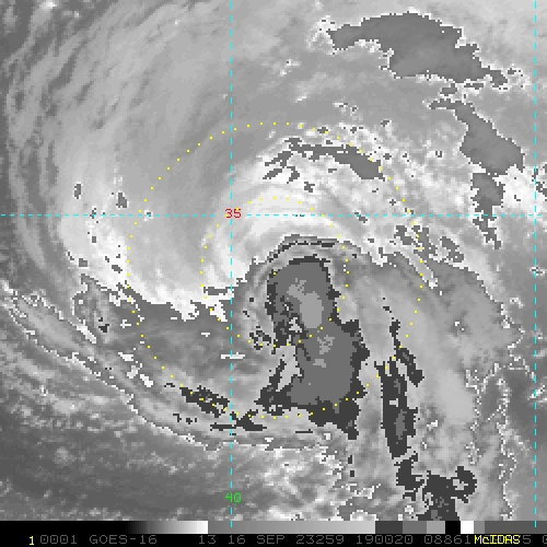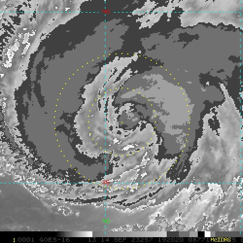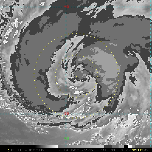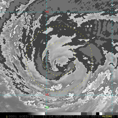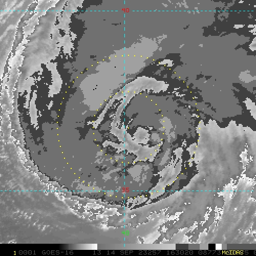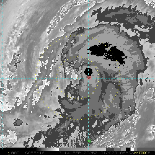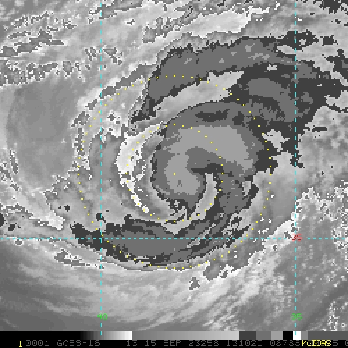 To view a loop of all images from this storm, click any of the "Loop" buttons without selecting any specific images. To select a specific range of images click an option for "Starting Image" and "Ending Image", and then click any of the "Loop" buttons.