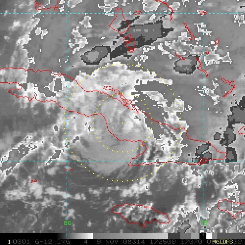 To view a loop of all images from this storm, click any of the "Loop" buttons without selecting any specific images. To select a specific range of images click an option for "Starting Image" and "Ending Image", and then click any of the "Loop" buttons.