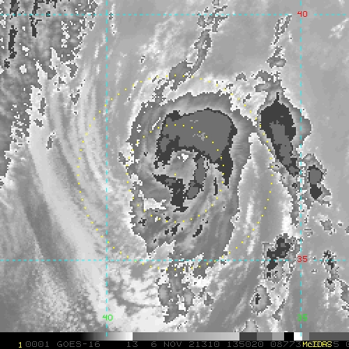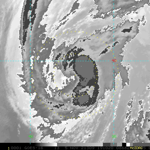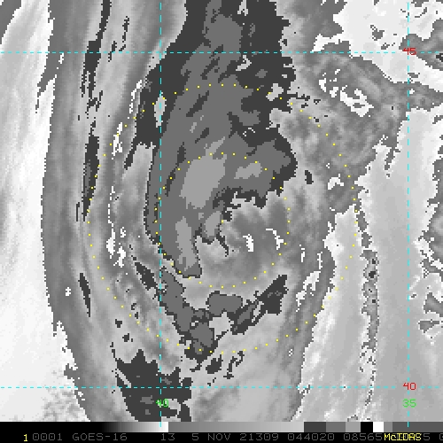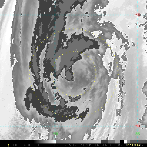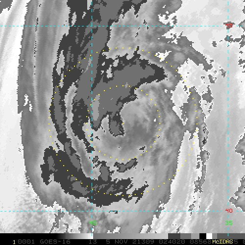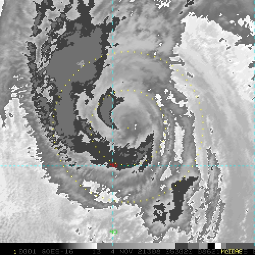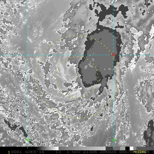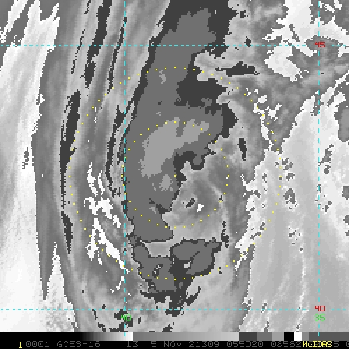 To view a loop of all images from this storm, click any of the "Loop" buttons without selecting any specific images. To select a specific range of images click an option for "Starting Image" and "Ending Image", and then click any of the "Loop" buttons.