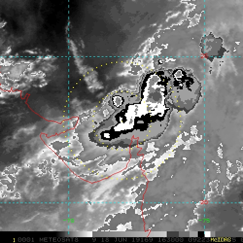 To view a loop of all images from this storm, click any of the "Loop" buttons without selecting any specific images. To select a specific range of images click an option for "Starting Image" and "Ending Image", and then click any of the "Loop" buttons.