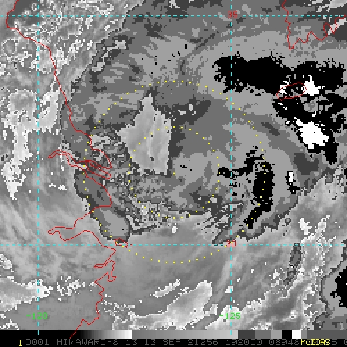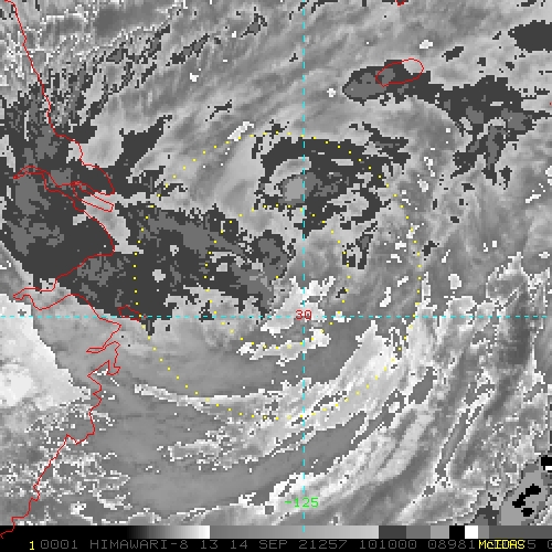 To view a loop of all images from this storm, click any of the "Loop" buttons without selecting any specific images. To select a specific range of images click an option for "Starting Image" and "Ending Image", and then click any of the "Loop" buttons.