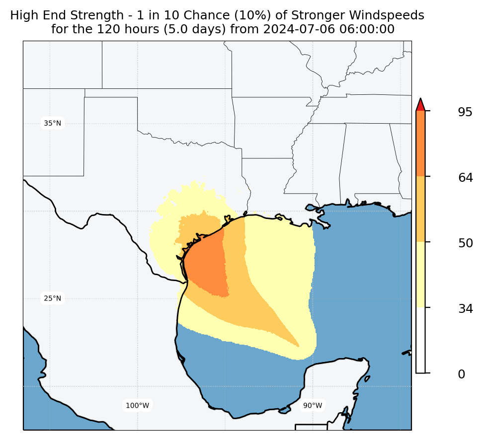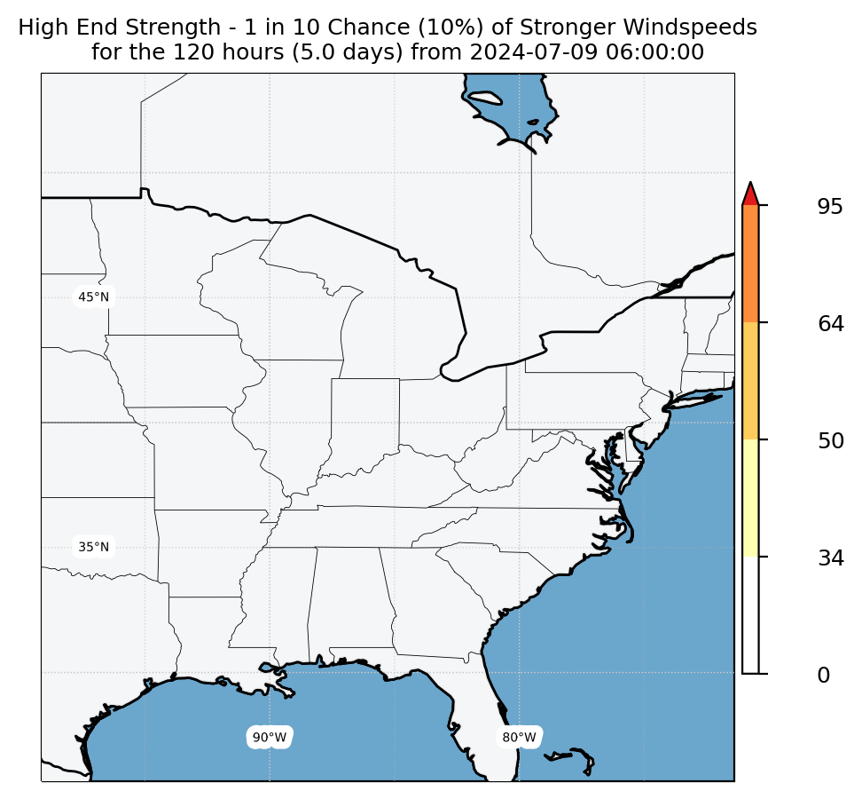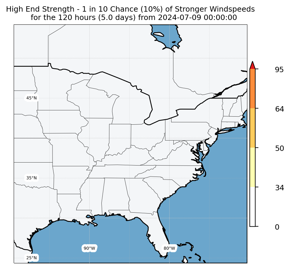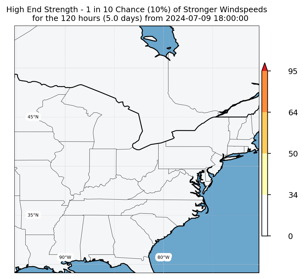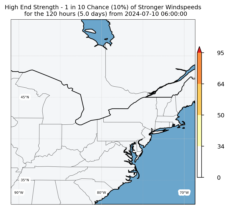 Experimental WTCM-based Wind Exceedance 10th percentile - Archive