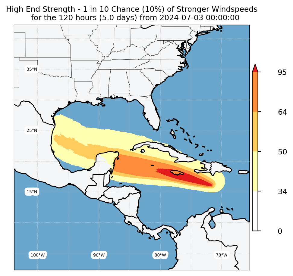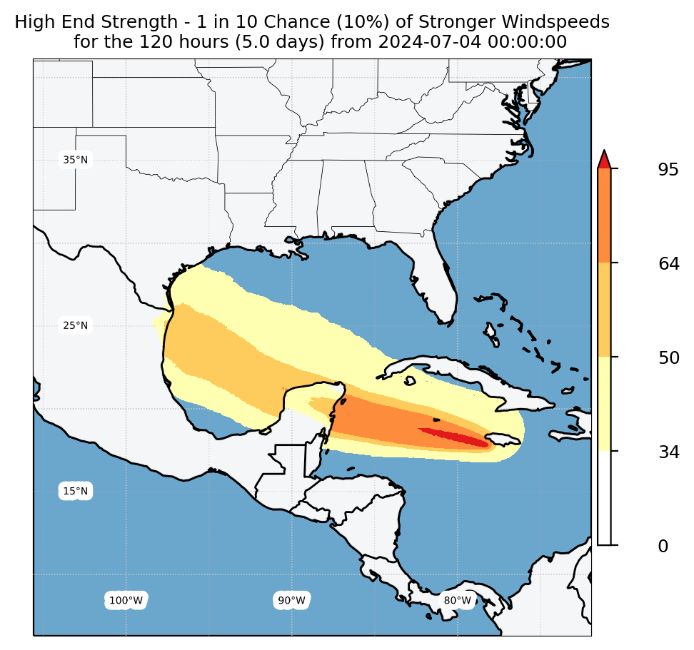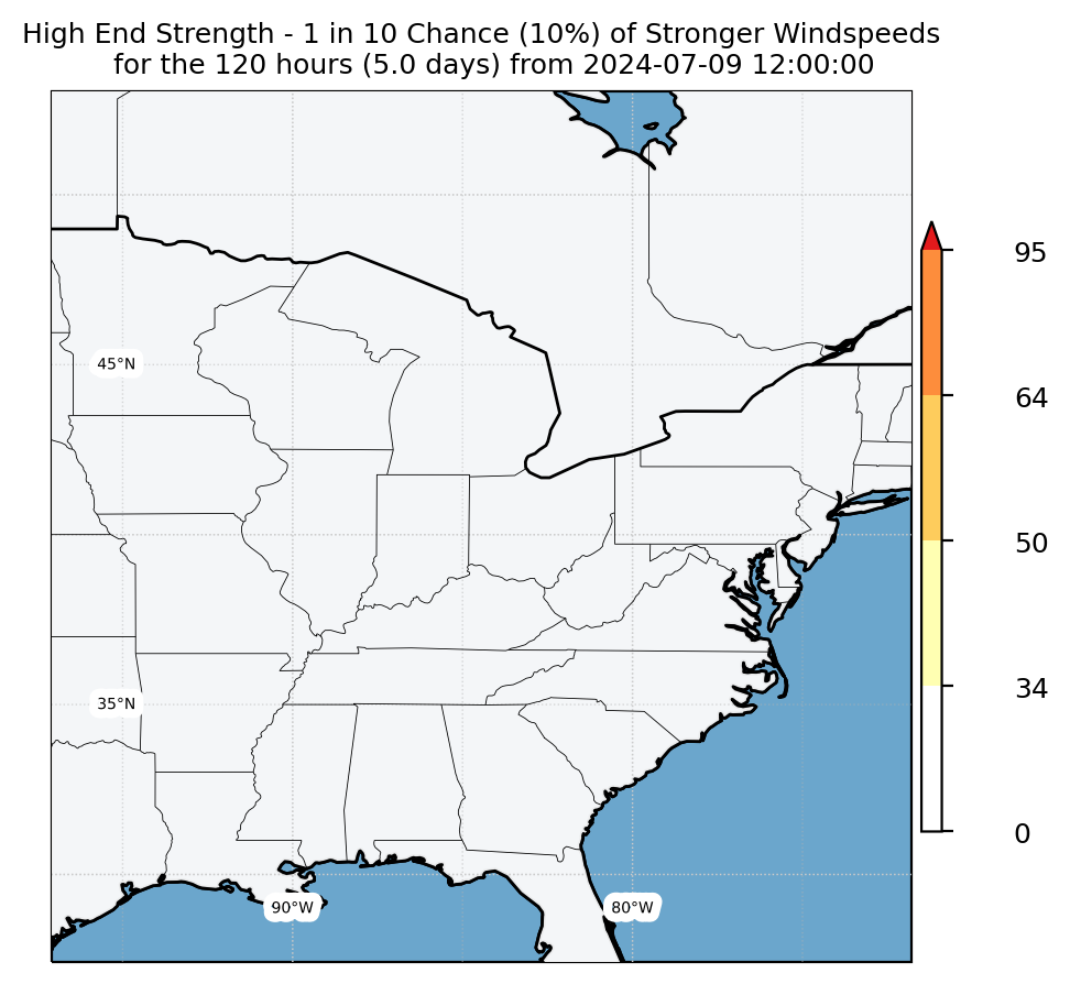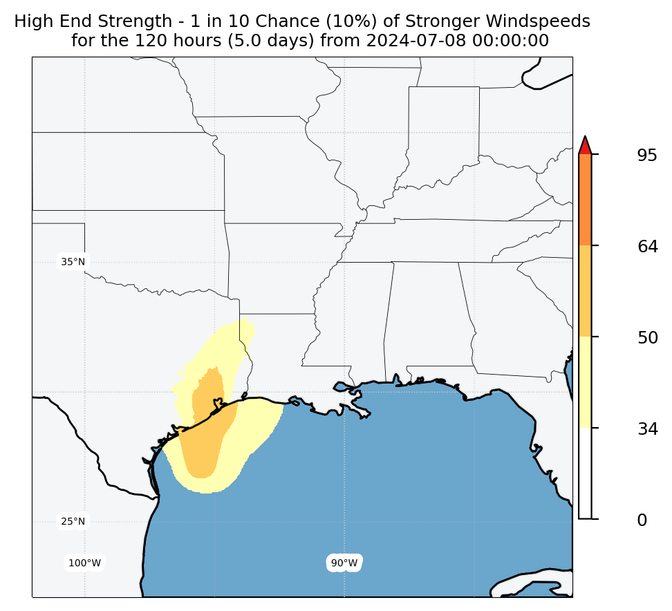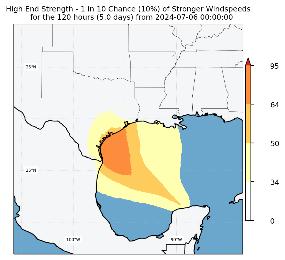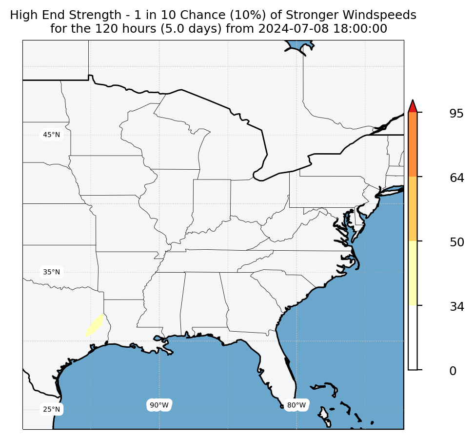Experimental WTCM-based Wind Exceedance 10th percentile - Archive