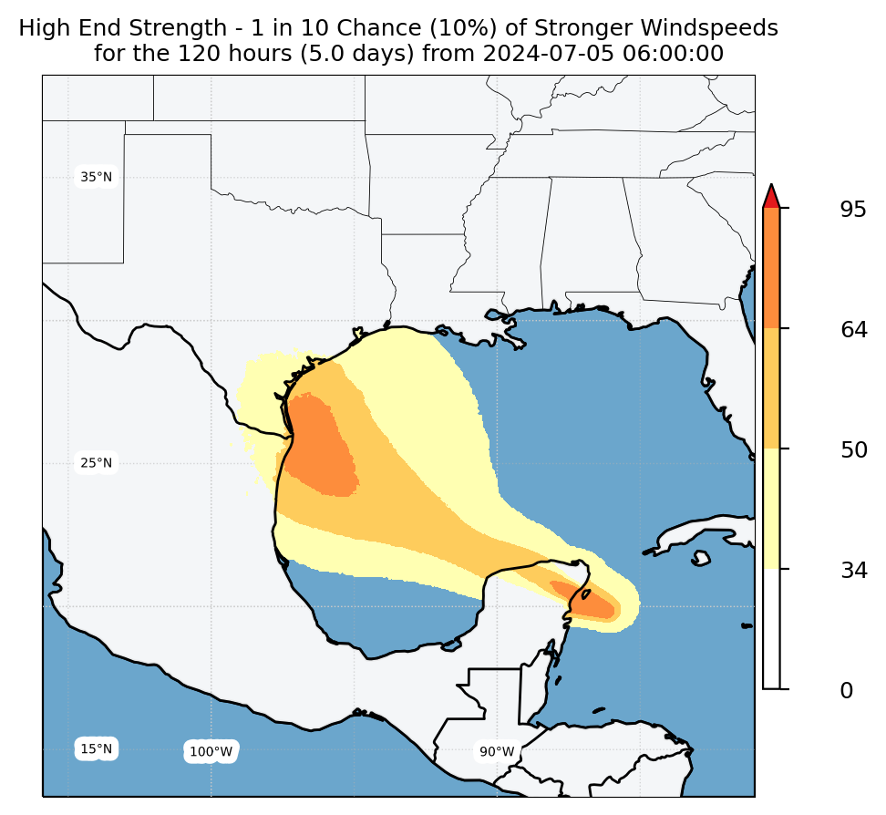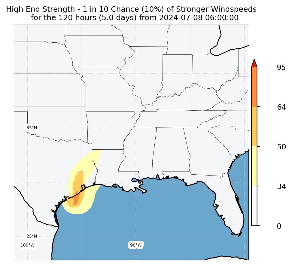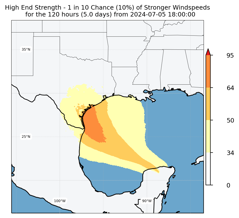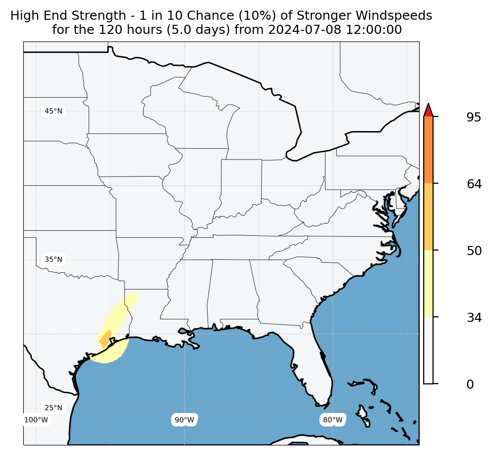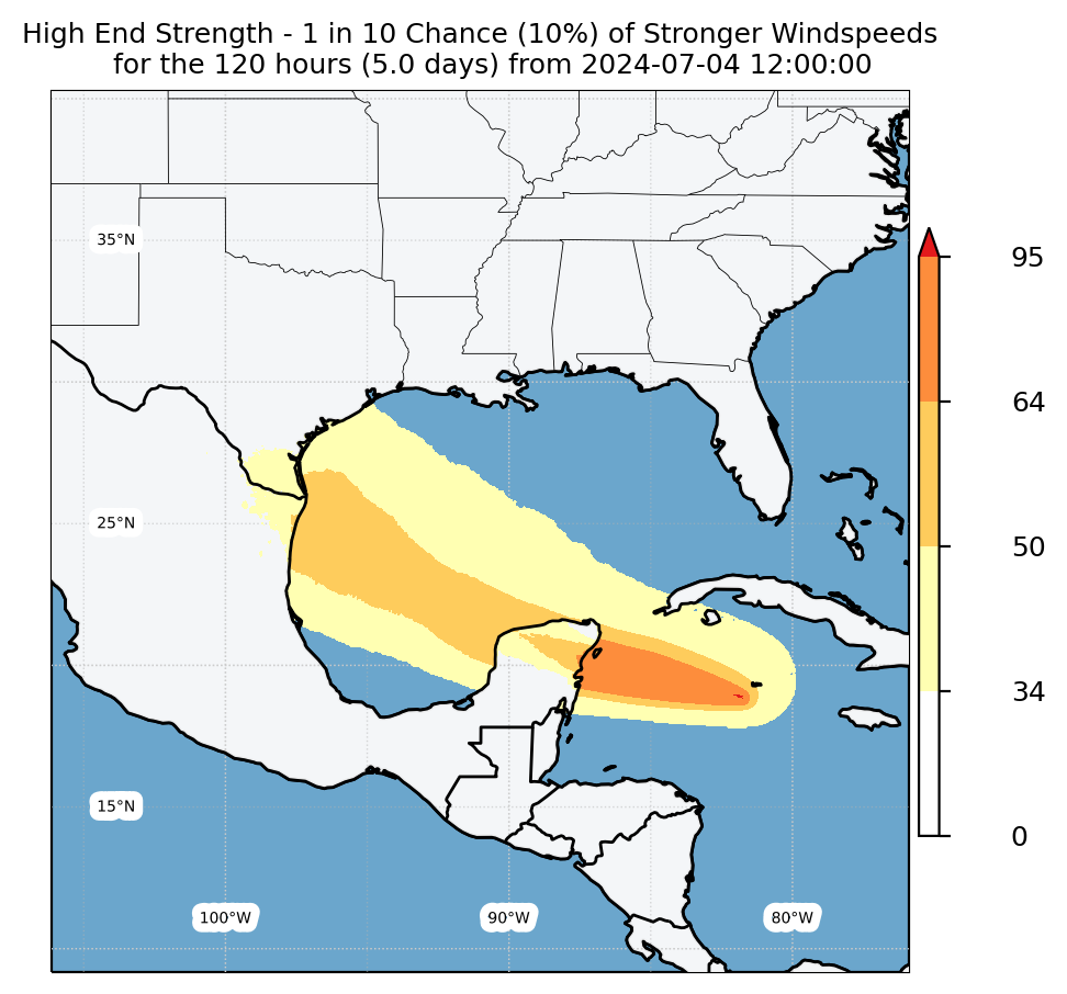 Experimental WTCM-based Wind Exceedance 10th percentile - Archive