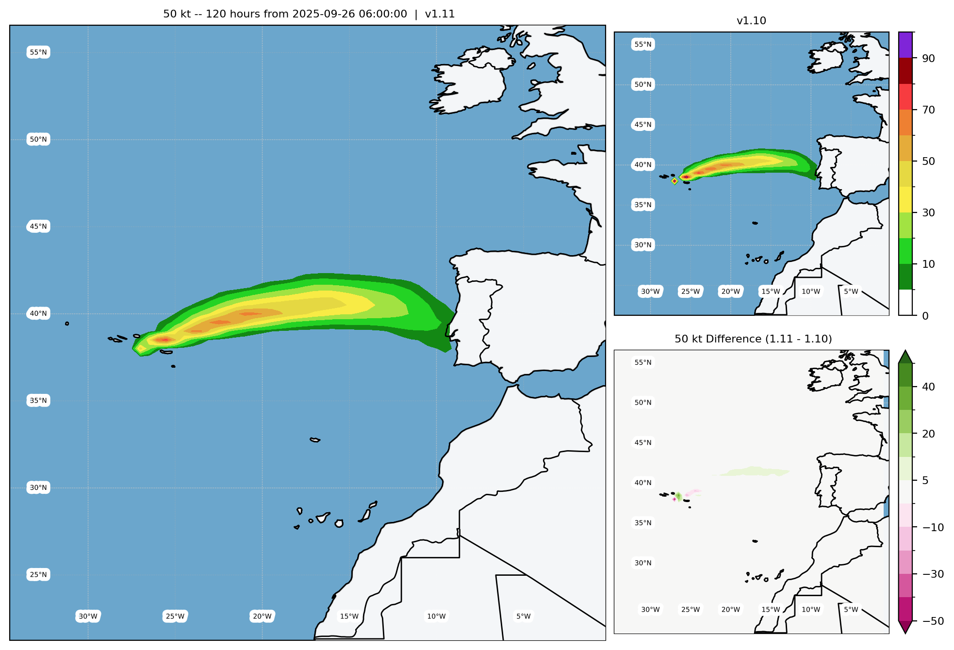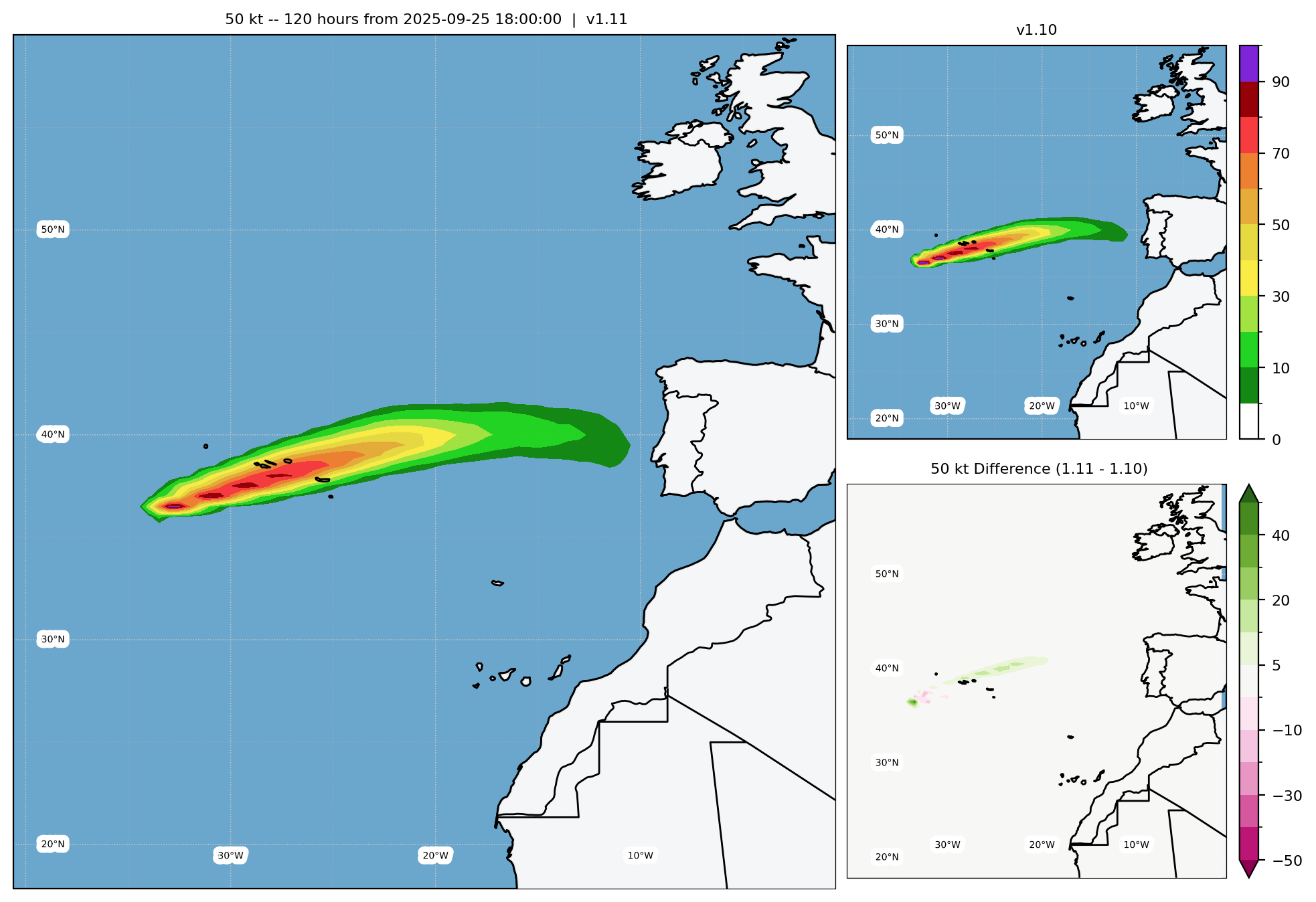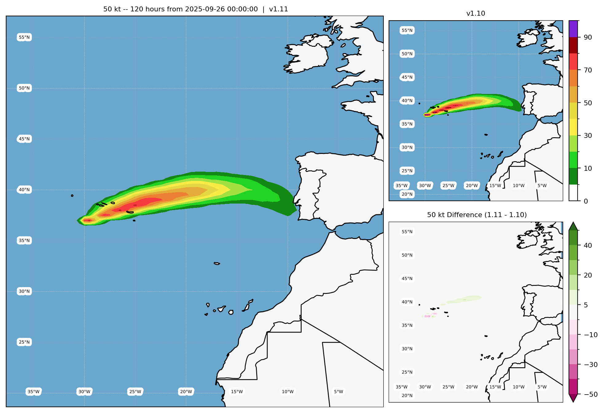50-kt WSP Difference, Radii Bias Correction - Archive