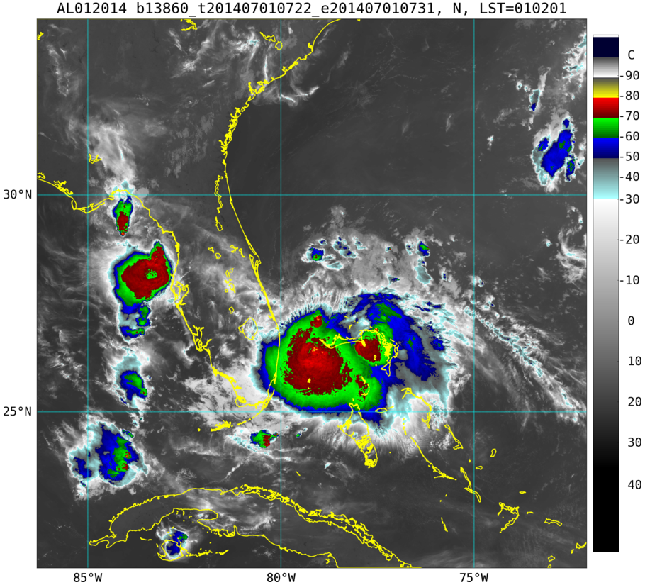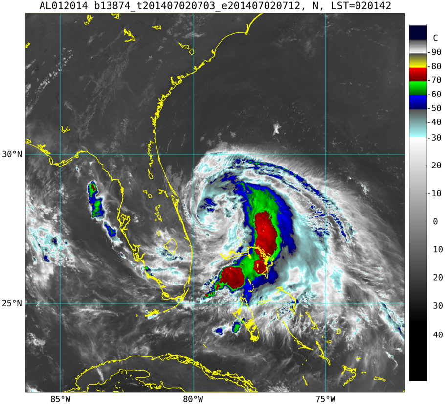 To view a loop of all images from this storm, click any of the "Loop" buttons without selecting any specific images. To select a specific range of images click an option for "Starting Image" and "Ending Image", and then click any of the "Loop" buttons.