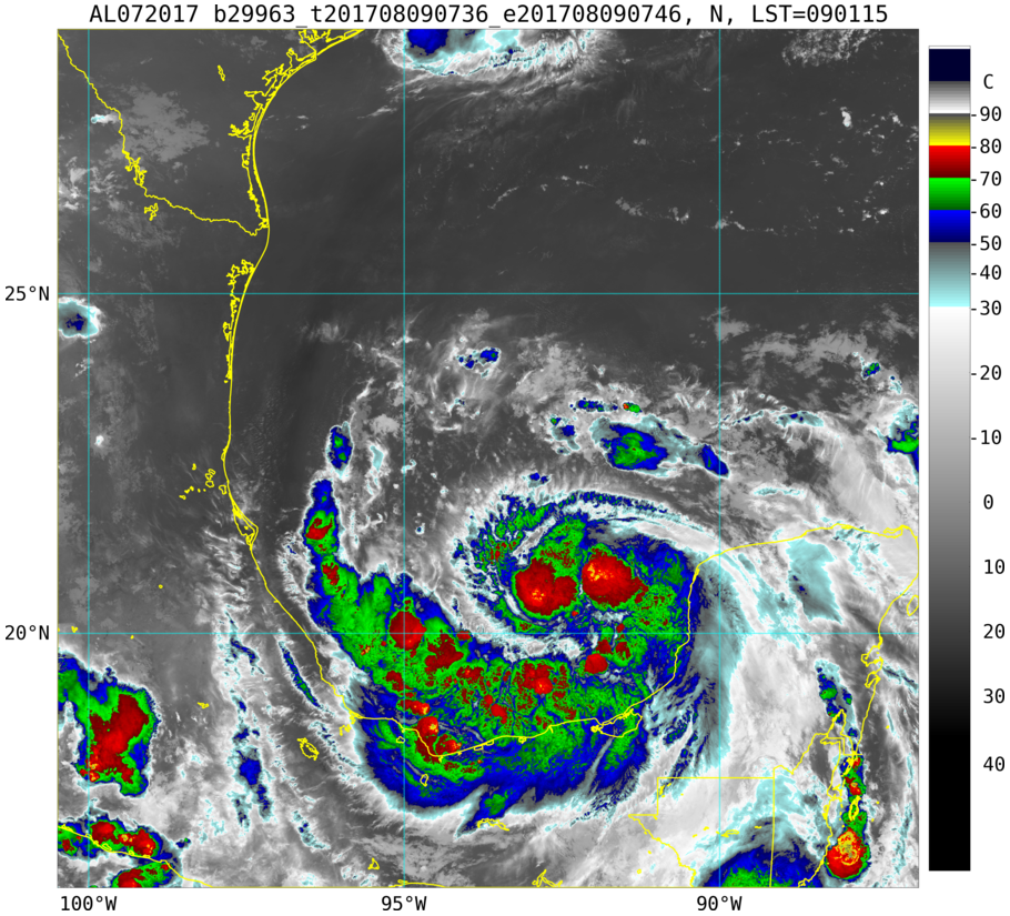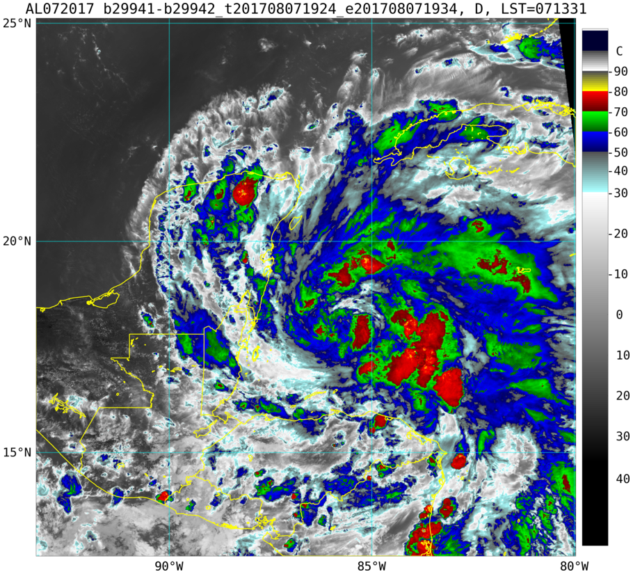To view a loop of all images from this storm, click any of the "Loop" buttons without selecting any specific images. To select a specific range of images click an option for "Starting Image" and "Ending Image", and then click any of the "Loop" buttons.