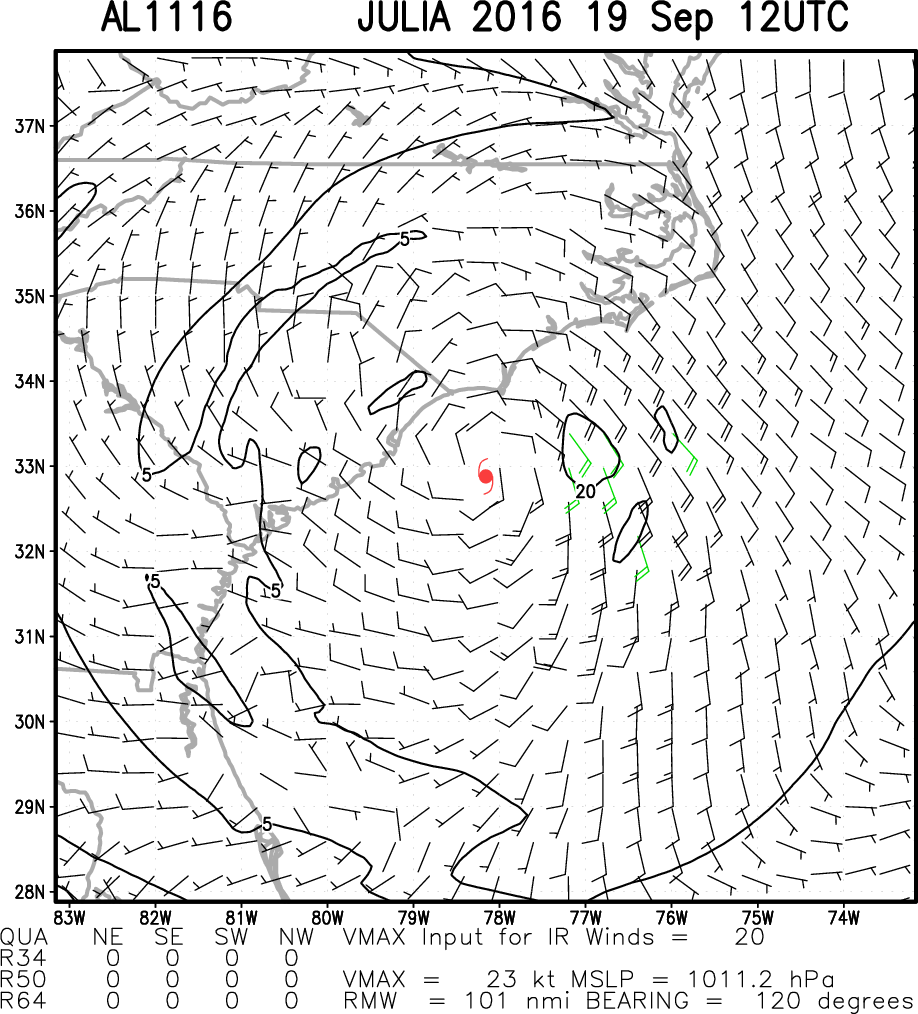 | 2016-09-19 06:00 | 32.4 | -78.2 | 20 |