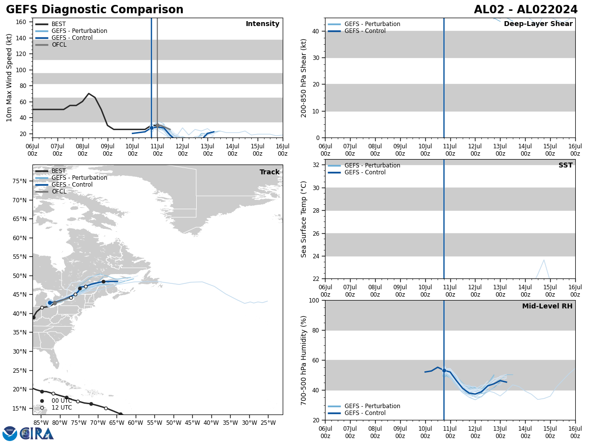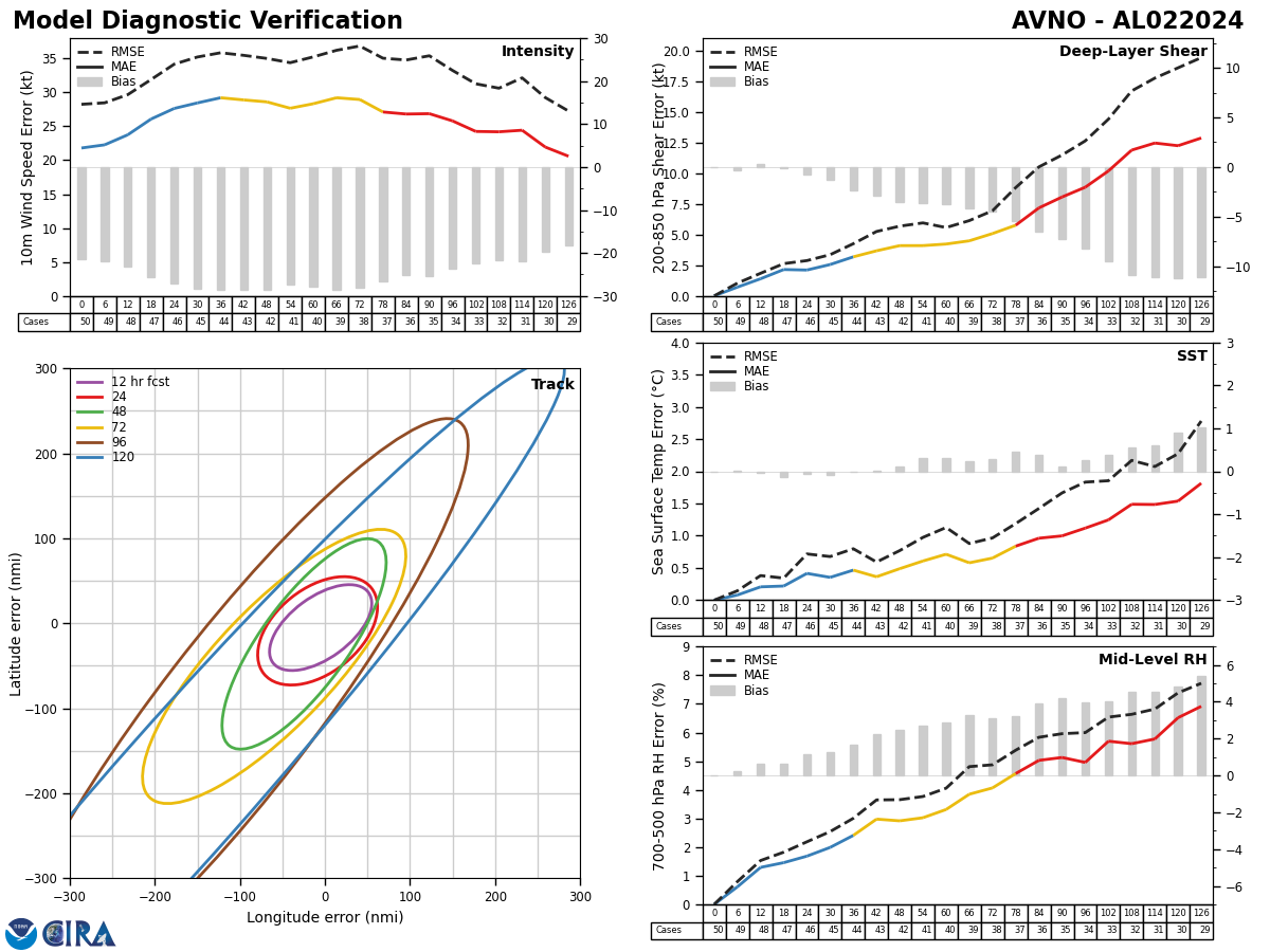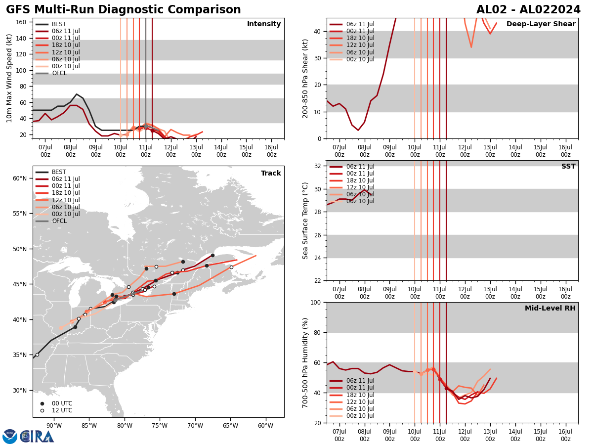 GFS Diagnostic Verification - Intensity, 850-200 mb Shear, Sea Surface Temperature, and 700-500 mb Relative Humidity