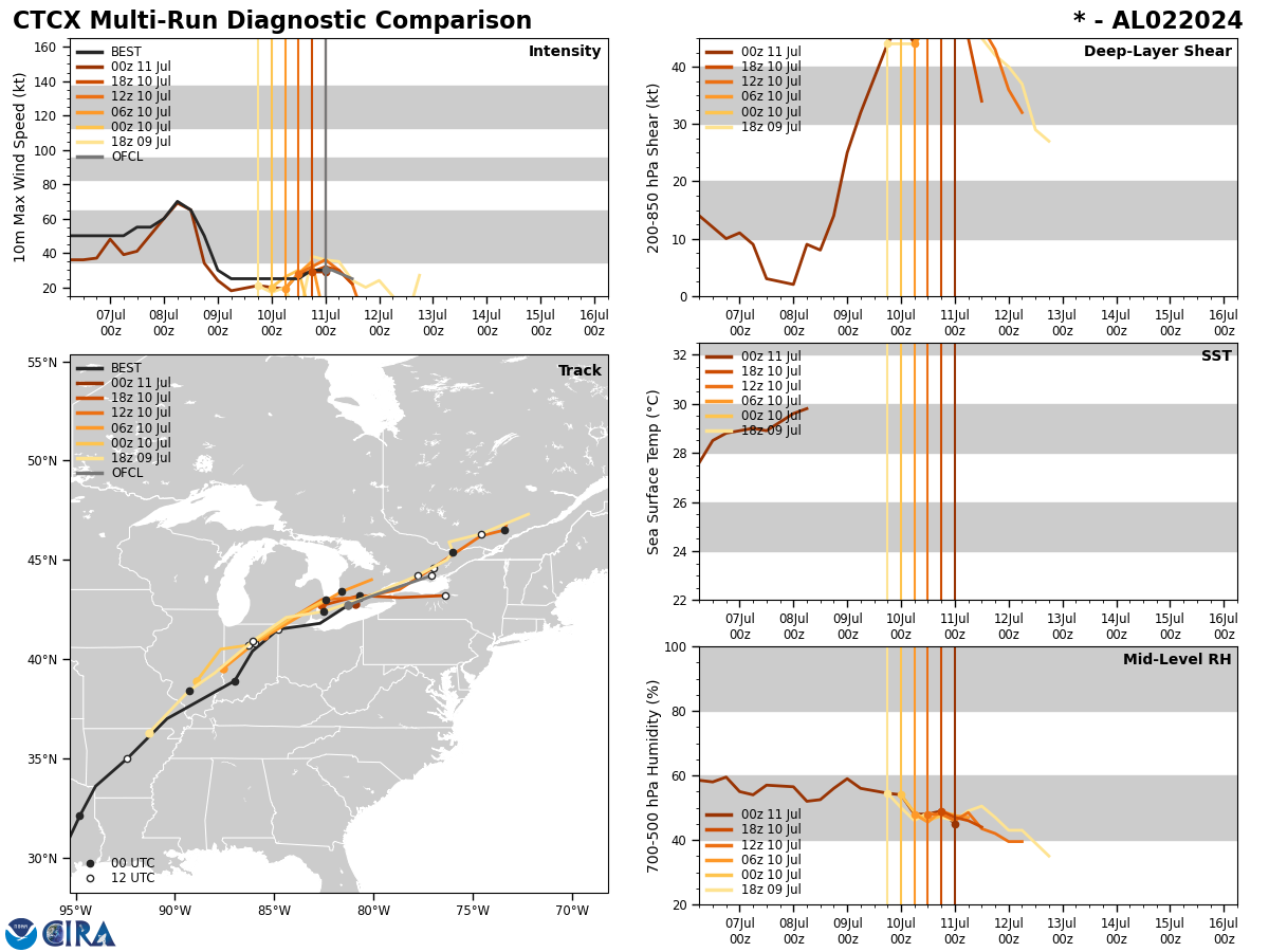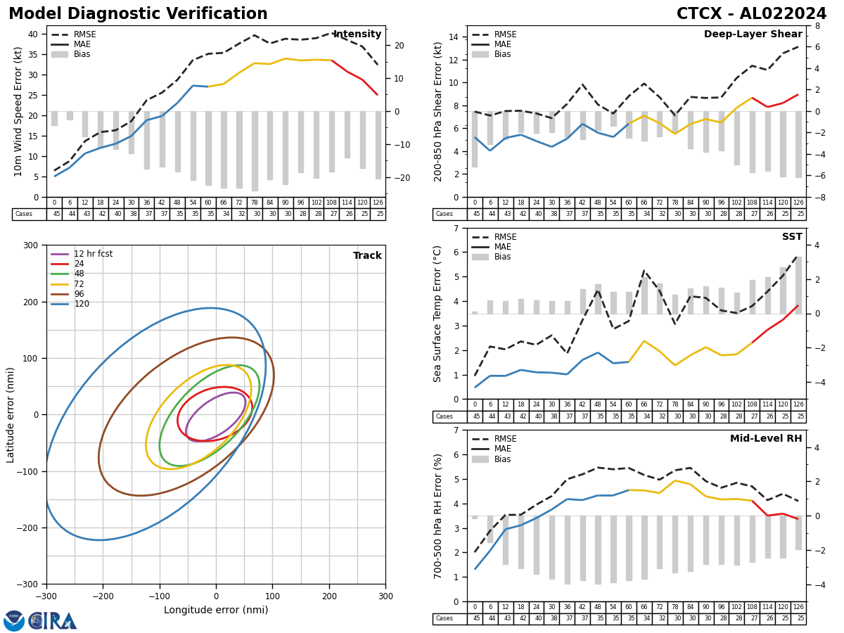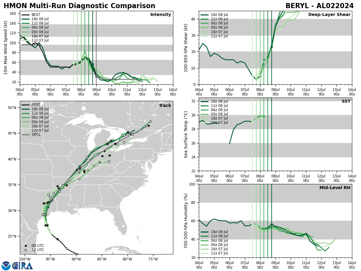 GFS Diagnostic Verification - Intensity, 850-200 mb Shear, Sea Surface Temperature, and 700-500 mb Relative Humidity