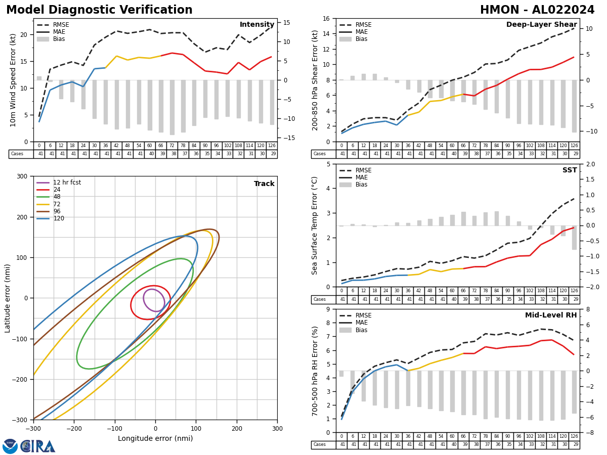 HMON Diagnostic Verification - Intensity, 850-200 mb Shear, Sea Surface Temperature, and 700-500 mb Relative Humidity