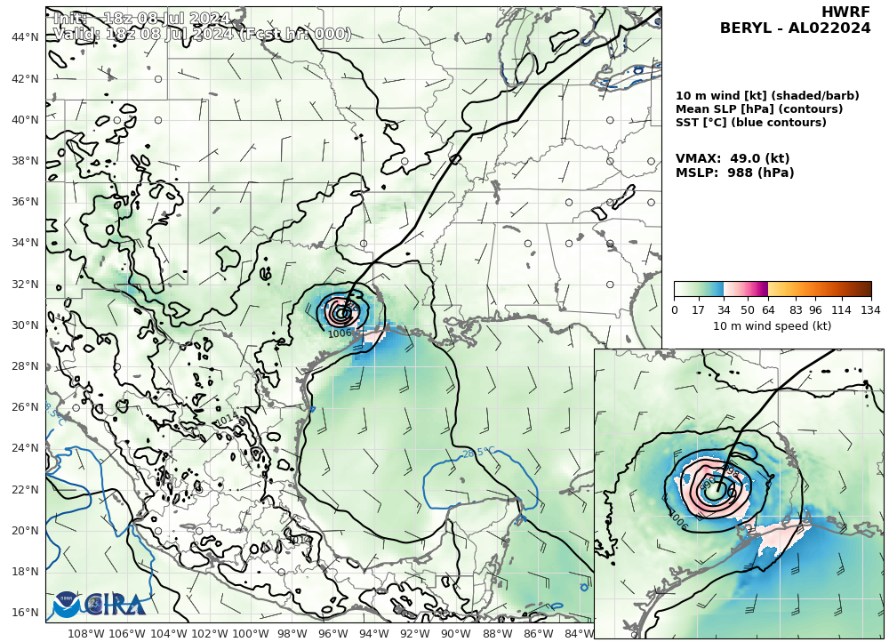HWRF 10m Wind Speed & Sea Level Pressure