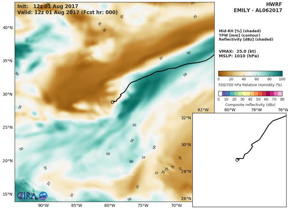 HWRF Diagnostic Verification - Intensity, 850-200 mb Shear, Sea Surface Temperature, and 700-500 mb Relative Humidity