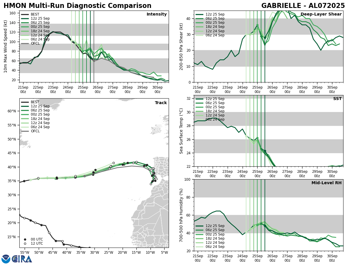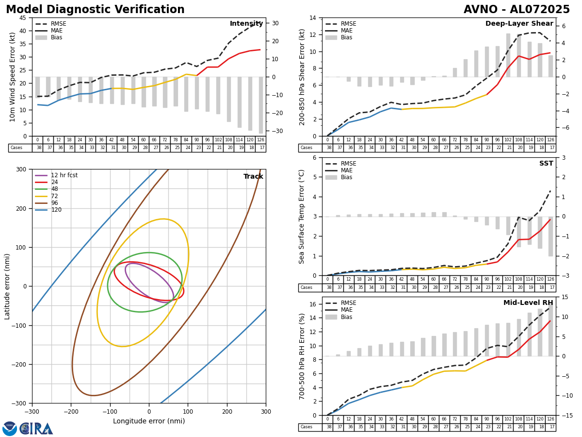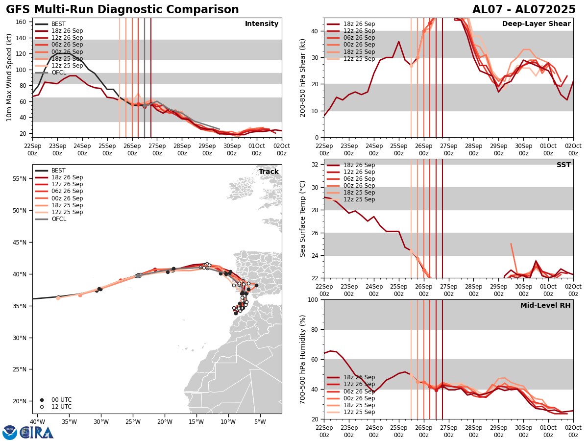 GFS Diagnostic Verification - Intensity, 850-200 mb Shear, Sea Surface Temperature, and 700-500 mb Relative Humidity