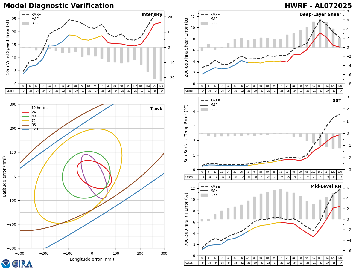 HWRF Diagnostic Verification - Intensity, 850-200 mb Shear, Sea Surface Temperature, and 700-500 mb Relative Humidity