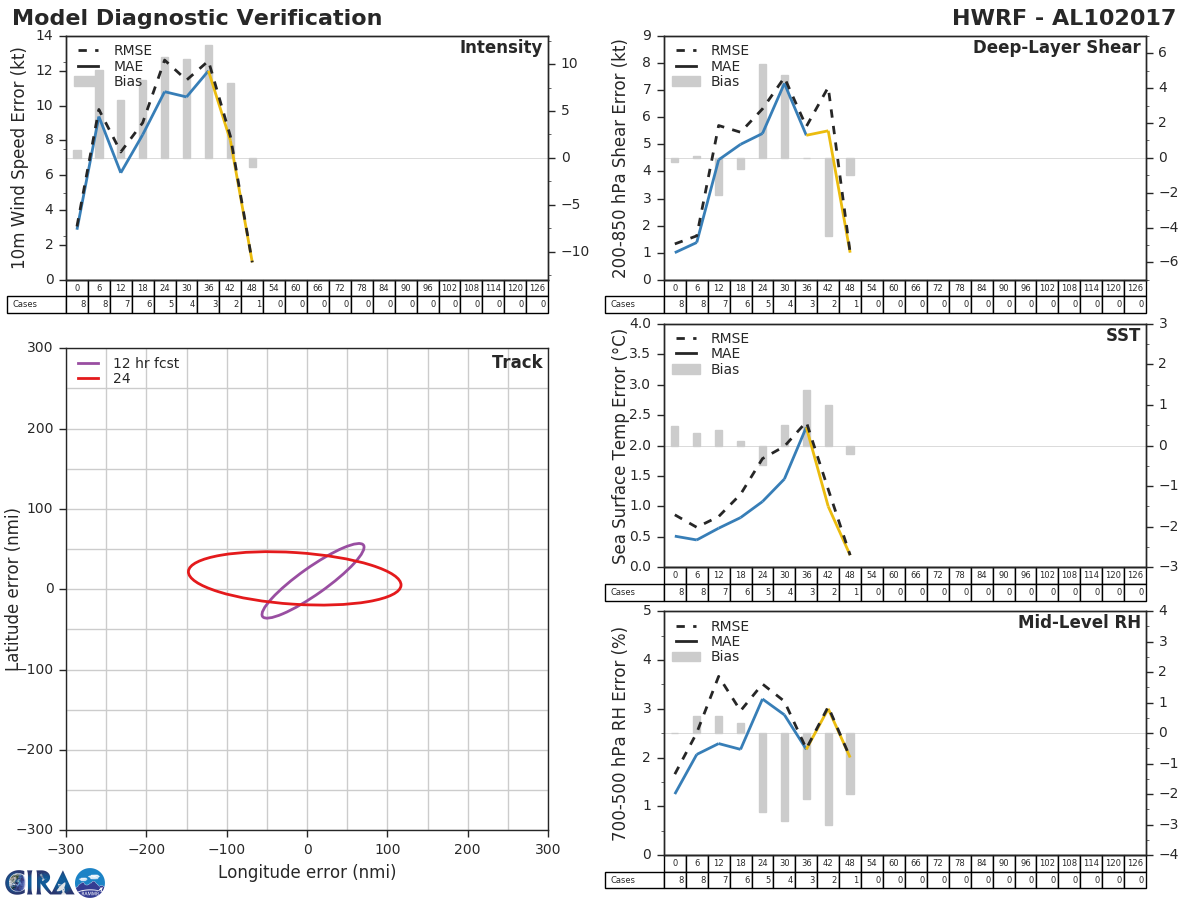 HWRF Diagnostic Verification - Intensity, 850-200 mb Shear, Sea Surface Temperature, and 700-500 mb Relative Humidity
