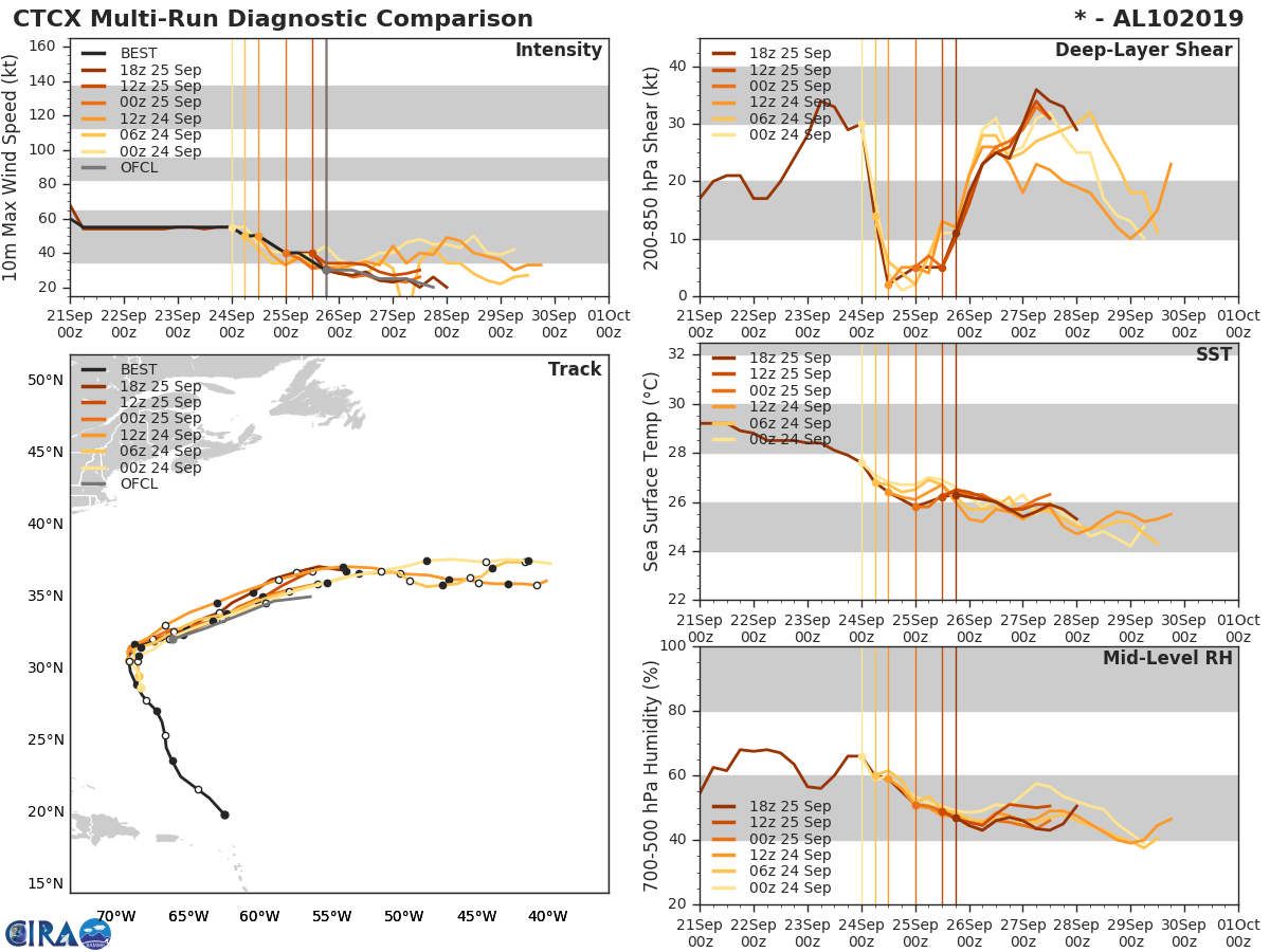 GFS Diagnostic Verification - Intensity, 850-200 mb Shear, Sea Surface Temperature, and 700-500 mb Relative Humidity