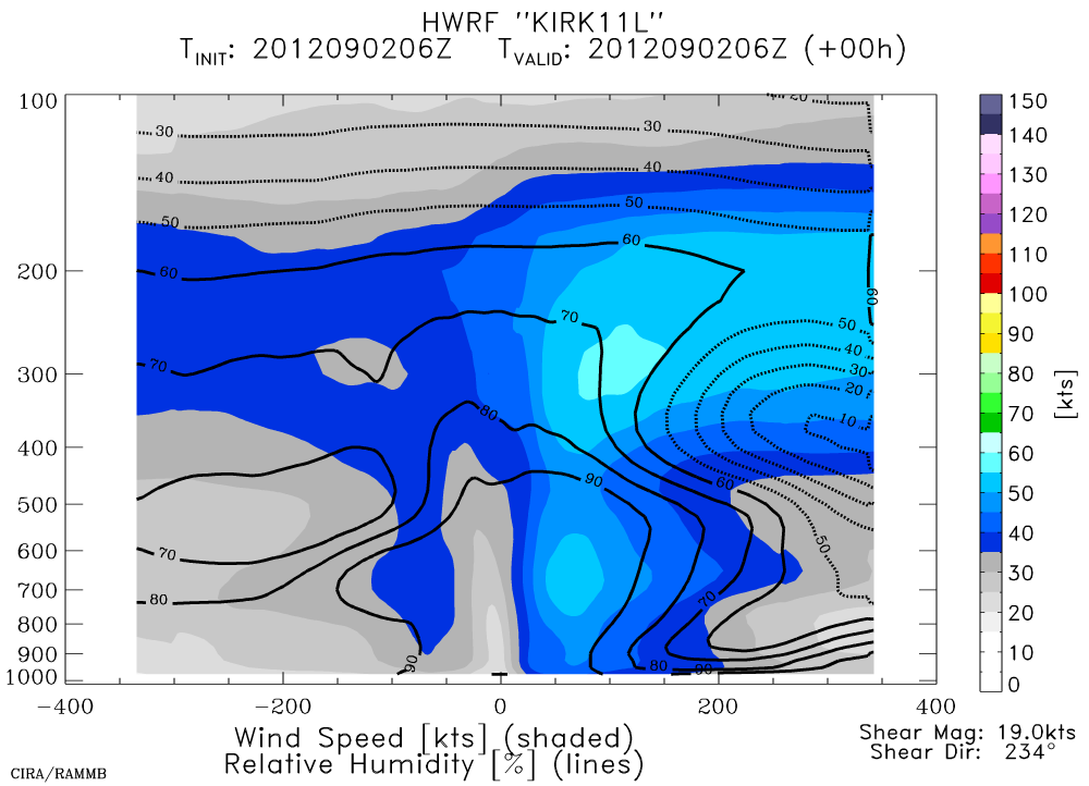 HWRF Along-Shear Vertical Cross Section - Wind Speed & Relative Humidity