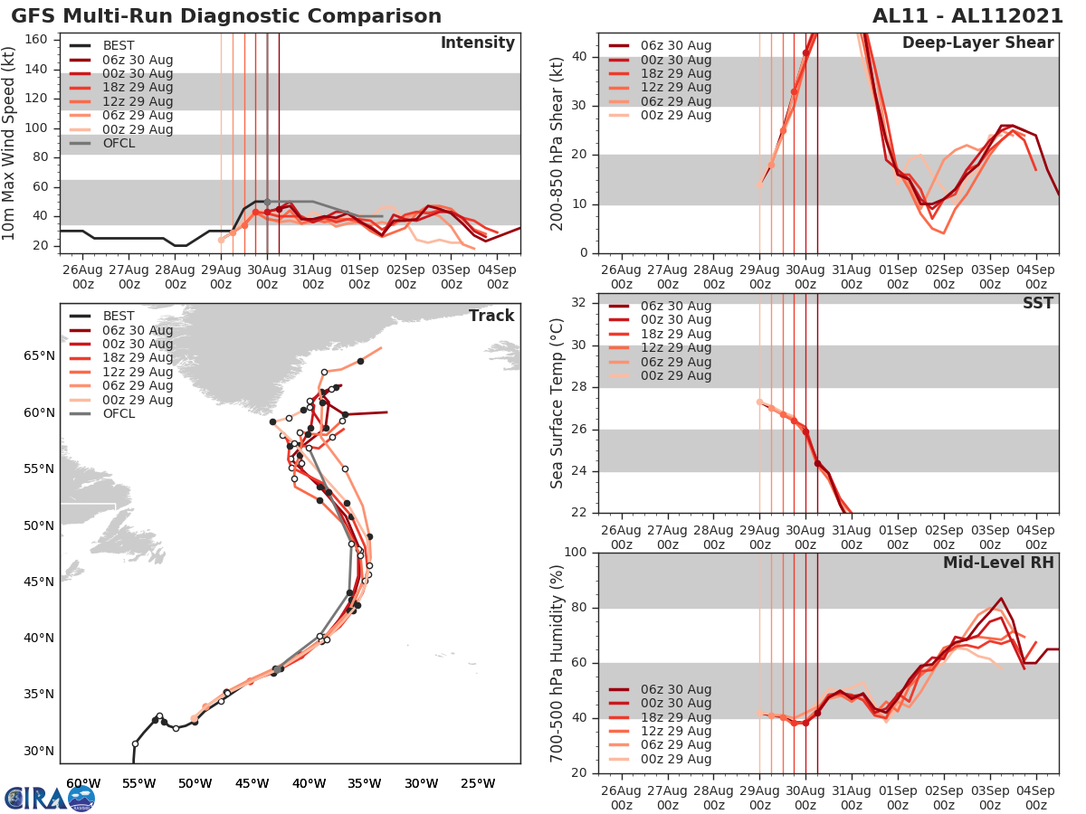GFS Diagnostic Verification - Intensity, 850-200 mb Shear, Sea Surface Temperature, and 700-500 mb Relative Humidity