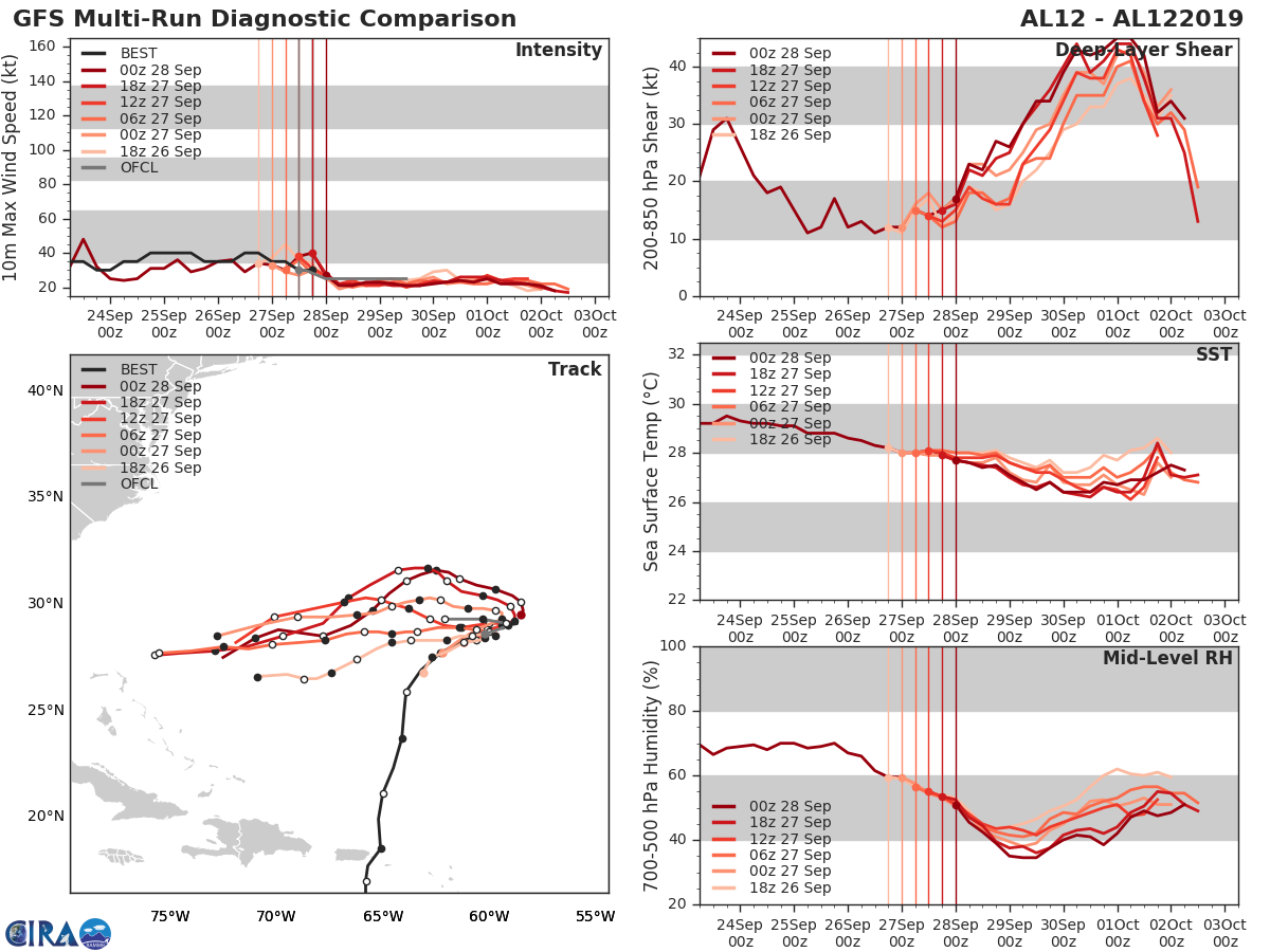 GFS Diagnostic Verification - Intensity, 850-200 mb Shear, Sea Surface Temperature, and 700-500 mb Relative Humidity