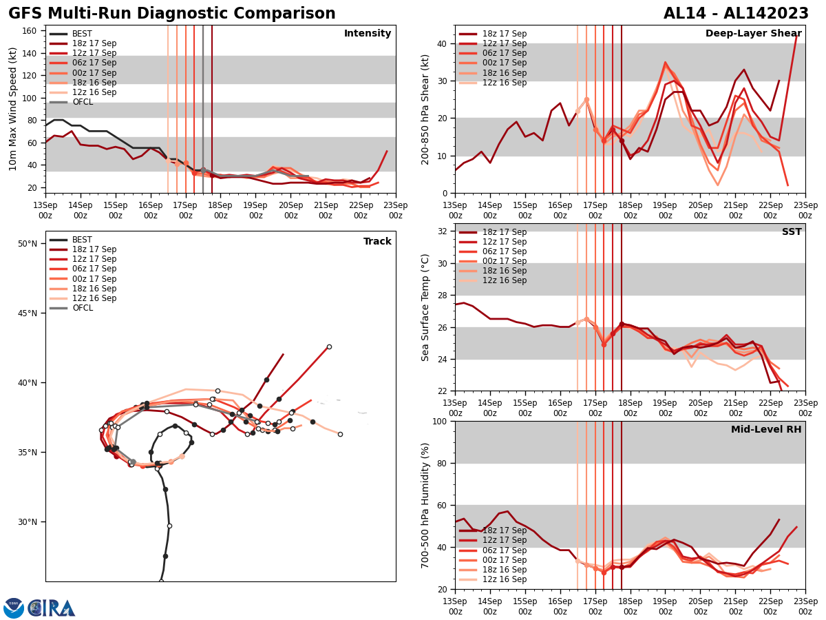 GFS Diagnostic Verification - Intensity, 850-200 mb Shear, Sea Surface Temperature, and 700-500 mb Relative Humidity