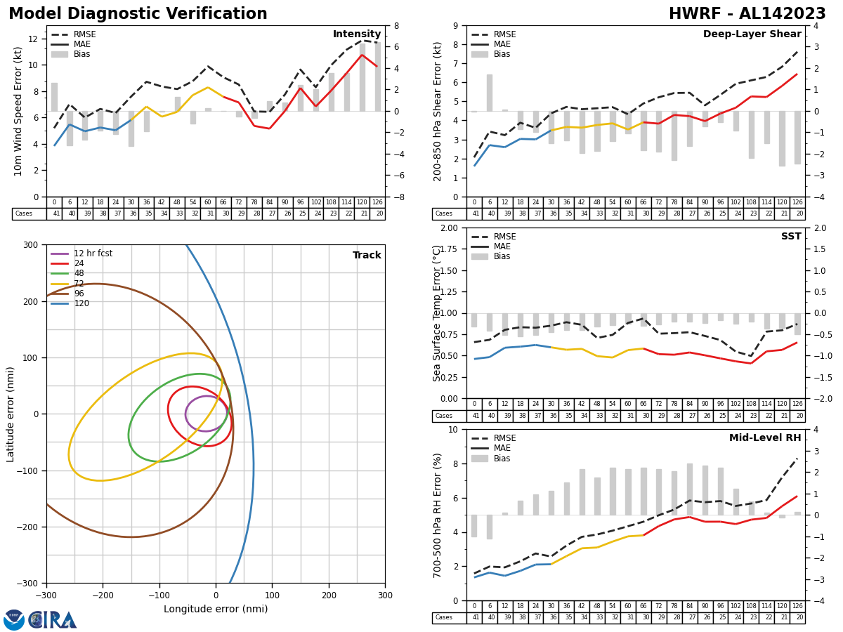 HWRF Diagnostic Verification - Intensity, 850-200 mb Shear, Sea Surface Temperature, and 700-500 mb Relative Humidity