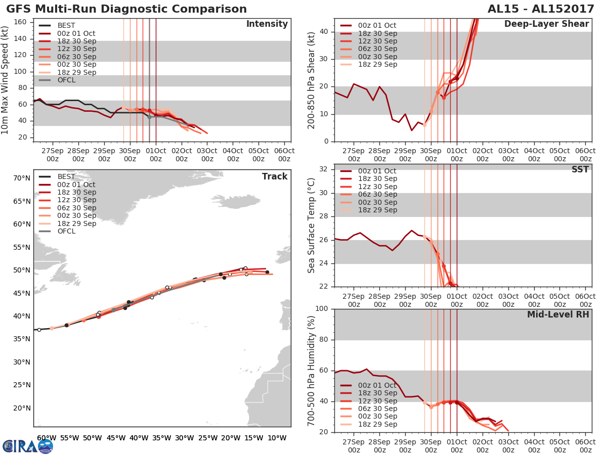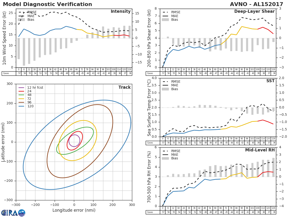 GFS Diagnostic Verification - Intensity, 850-200 mb Shear, Sea Surface Temperature, and 700-500 mb Relative Humidity