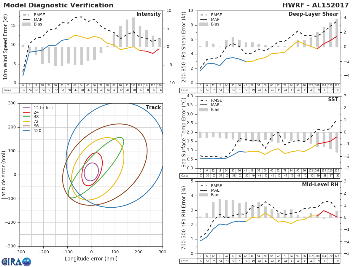 HWRF Diagnostic Verification - Intensity, 850-200 mb Shear, Sea Surface Temperature, and 700-500 mb Relative Humidity
