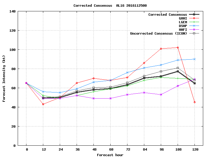 GFS Diagnostic Verification - Intensity, 850-200 mb Shear, Sea Surface Temperature, and 700-500 mb Relative Humidity