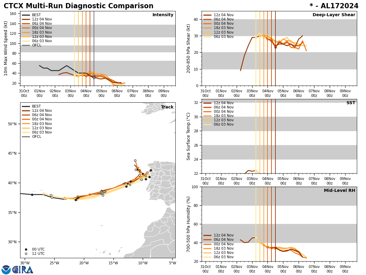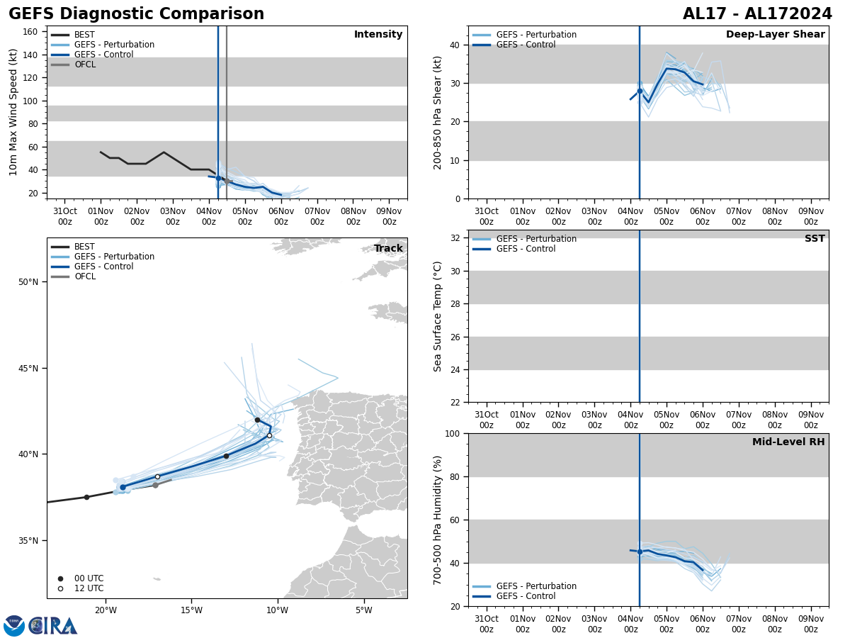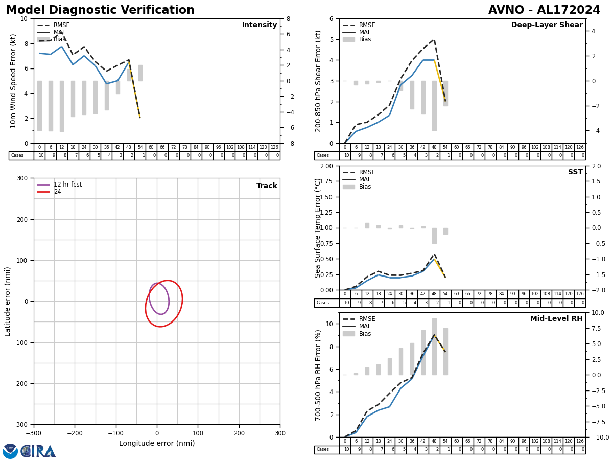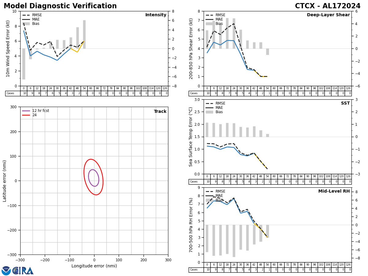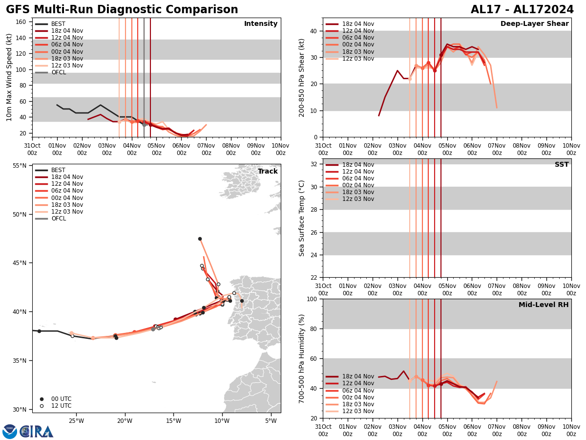 GFS Diagnostic Verification - Intensity, 850-200 mb Shear, Sea Surface Temperature, and 700-500 mb Relative Humidity