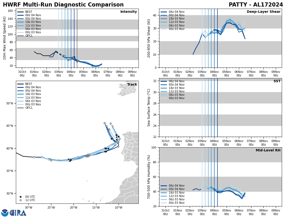 HWRF Diagnostic Verification - Intensity, 850-200 mb Shear, Sea Surface Temperature, and 700-500 mb Relative Humidity